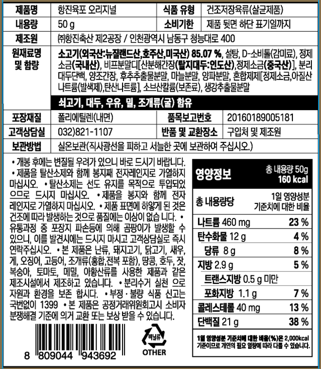 [Ç×ÁøÀ°Æ÷] ¿À¸®Áö³Î ¼Ò°í±â À°Æ÷ 50g x 5ºÀ