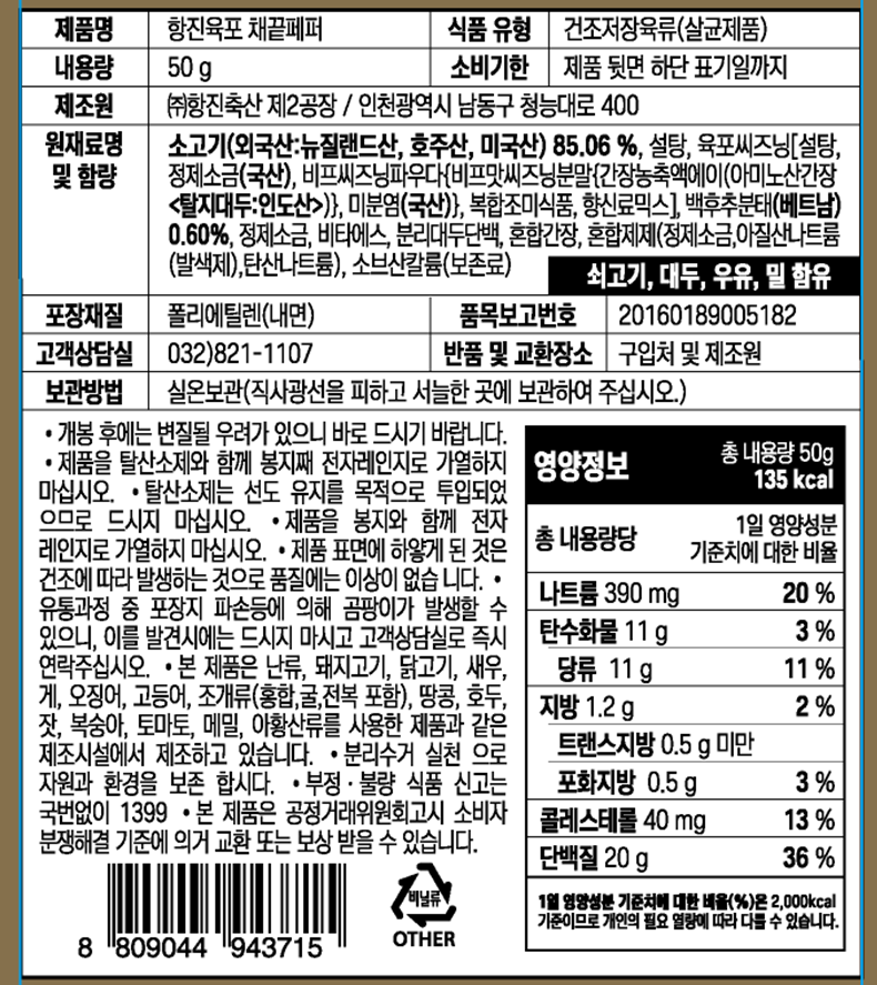 - Á¦Ç°¸í,½ÄǰÀÇ À¯Çü,»ý»êÀÚ ¹× ¼ÒÀçÁö,¿ë·®(Áß·®),¼ö·®,¿øÀç·á¸í ¹× ÇÔ·®,¼ÒºñÀÚ¾ÈÀüÀ» À§ÇÑ ÁÖÀÇ»çÇ×,¼ÒºñÀÚ»ó´ã °ü·Ã ÀüÈ­¹øÈ£,¿µ¾ç¼ººÐ,À¯ÀüÀÚº¯Çü½Äǰ,¼öÀÔ½Äǰ µîÀº »óǰ »ó¼¼Á¤º¸¿¡ Ç¥½Ã µÇ¾î ÀÖ½À´Ï´Ù.