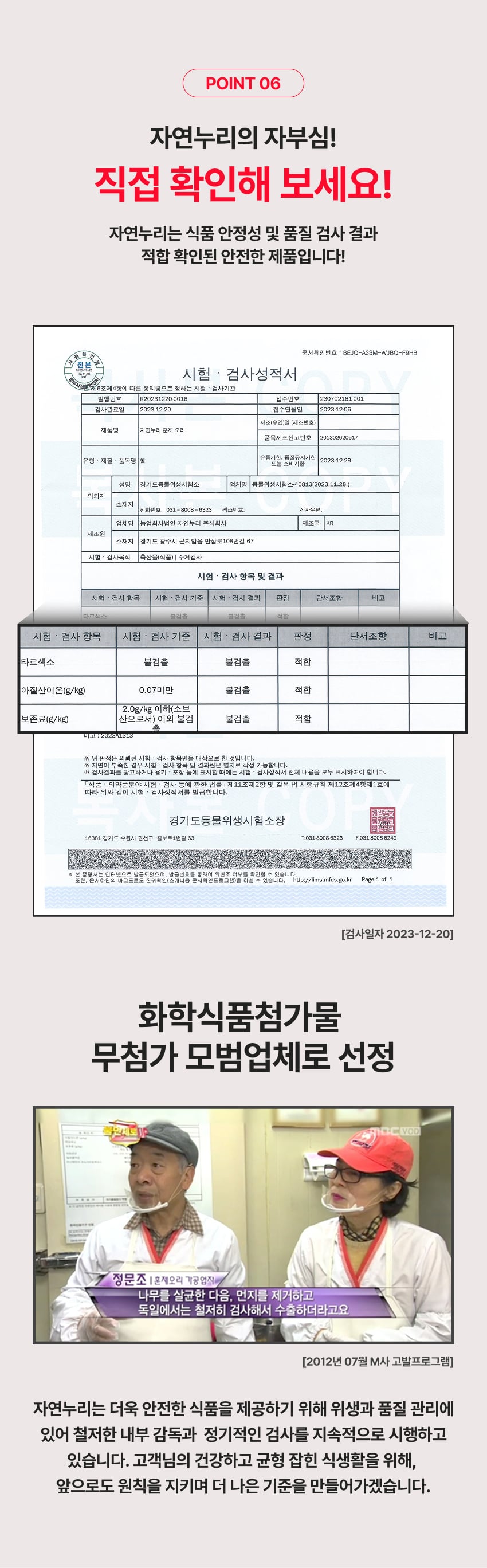 - Á¦Ç°¸í,½ÄǰÀÇ À¯Çü,»ý»êÀÚ ¹× ¼ÒÀçÁö,¿ë·®(Áß·®),¼ö·®,¿øÀç·á¸í ¹× ÇÔ·® µîÀº »óǰ »ó¼¼Á¤º¸¿¡ Ç¥½Ã µÇ¾î ÀÖ½À´Ï´Ù.