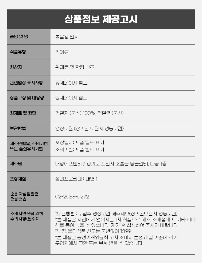 - ǰ¸ñ ¶Ç´Â ¸íĪ,¿ë·®(Áß·®),¼ö·®,Å©±â,»ý»êÀÚ,°ü·Ã¹ý»ó Ç¥½Ã»çÇ×,»óǰ±¸¼º,º¸°ü¹æ¹ý,¼ÒºñÀÚ¾ÈÀüÀ» À§ÇÑ ÁÖÀÇ»çÇ×,¼ÒºñÀÚ»ó´ã °ü·Ã ÀüÈ­¹øÈ£,ģȯ°æÀÎÁõ µîÀº »óǰ »ó¼¼Á¤º¸¿¡ Ç¥½Ã µÇ¾î ÀÖ½À´Ï´Ù.