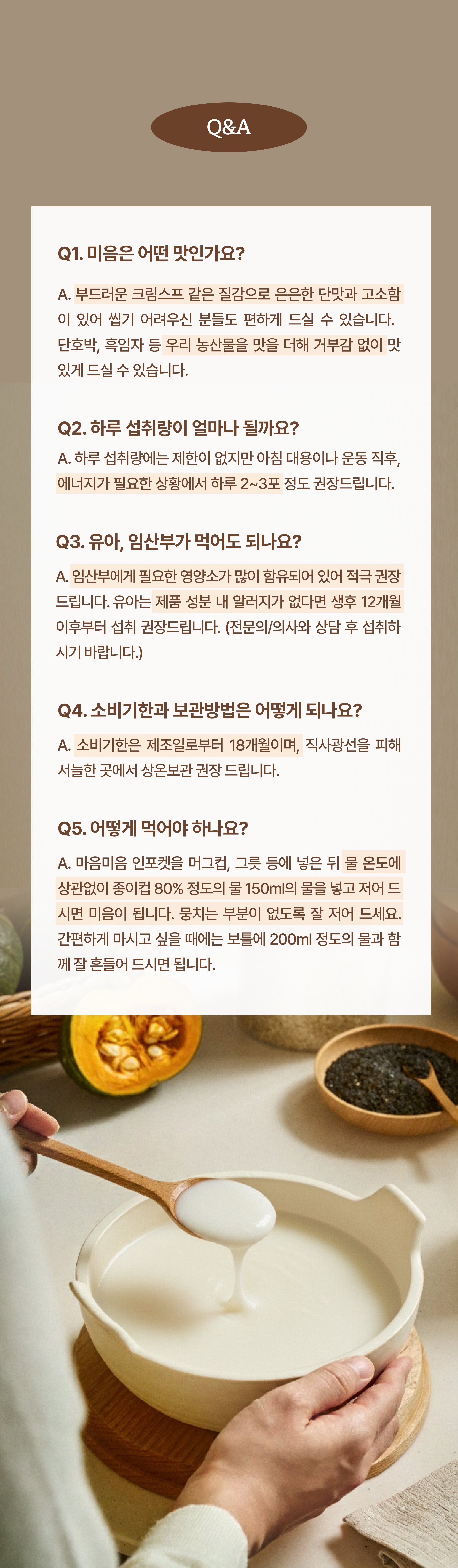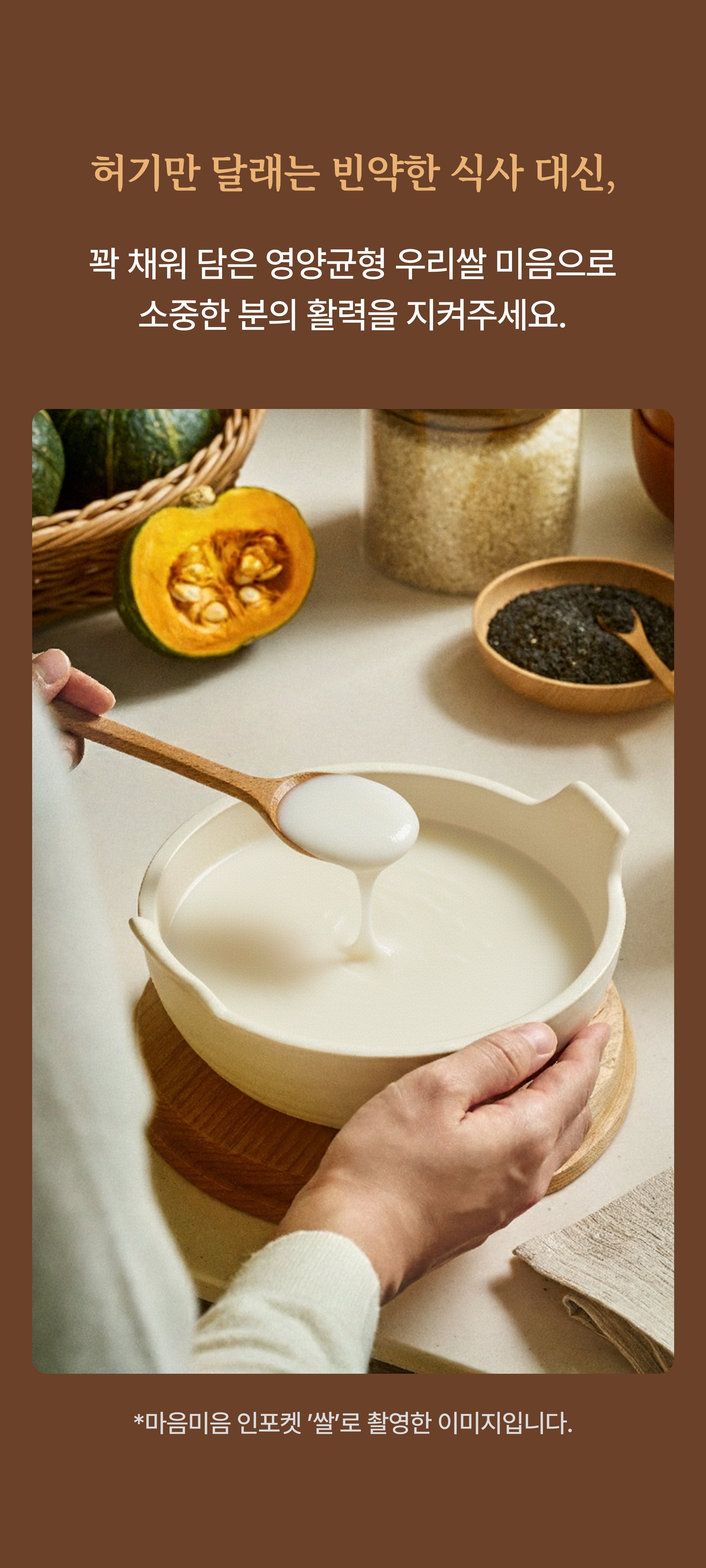 "¼ÒÁßÇÑ »ç¶÷ÀÇ ÇϷ縦 ÁöÅÊÇÏ´Â µû¶æÇÑ ¾à¼Ó, ¸¶À½¹ÌÀ½" ½Ä»ç¸¦ ¸Ö¸®ÇÏ°í »çÀÌ´Ù¿Í Ä¿ÇǸ¸ ãÀ¸½Ã´ø ÇÒ¸Ó´Ï. ½ÃÁßÀÇ À¯µ¿½ÄÀº ¼ÓÀÌ ºÒÆíÇÏ´Ù¸ç ³¡³» ¼ÕÀÌ °¡Áö ¾ÊÀ¸¼Ì½À´Ï´Ù. ±× ¸ð½ÀÀ» ÁöÄѺ¸´ø ½Äǰ°³¹ßÀÚ ¼ÕÀÚ´Â ÇҸӴϰ¡ °¡Àå ÁÁ¾ÆÇÏ´ø ¿ì¸®½Ò ¹ÌÀ½¿¡ ¿ì¸® ³ó»ê¹°ÀÇ ´ã¹éÇÑ ¸À°ú °úÇÐÀûÀ¸·Î ¼³°èÇÑ ¿µ¾çÀ» ´õÇß½À´Ï´Ù. ¸¶À½¹ÌÀ½Àº ´©±¸³ª Á¸¾öÇÏ°Ô ½Ä»çÇÒ ¼ö ÀÖ´Â ¼¼»óÀ» ¸¸µé¾î °©´Ï´Ù.
