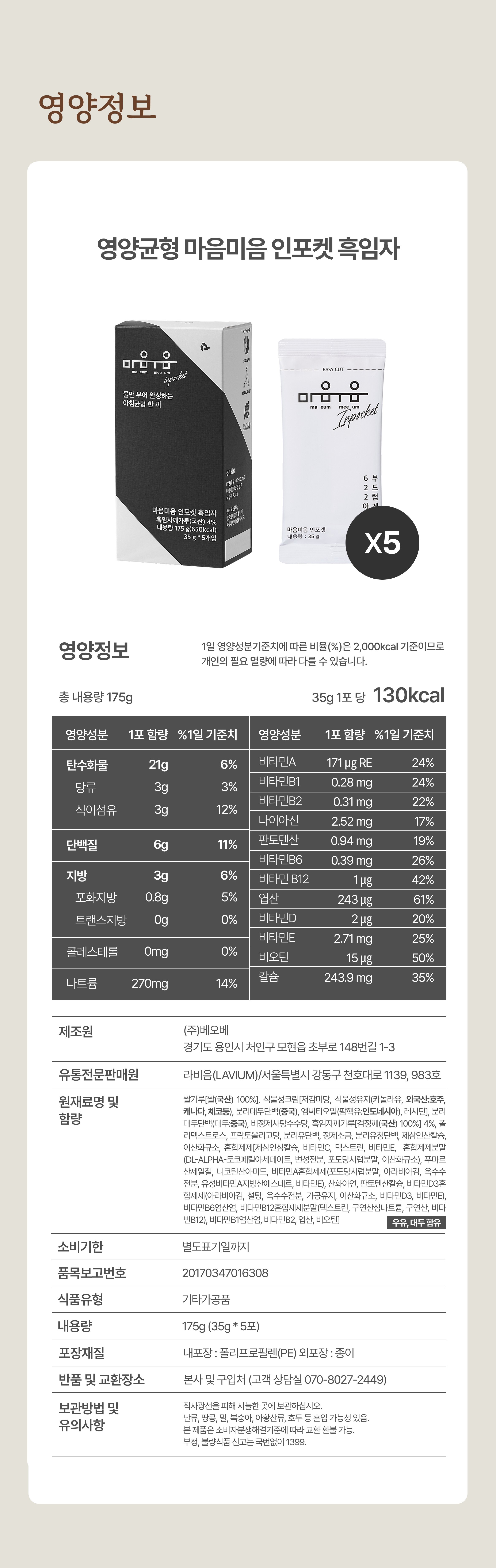 - Á¦Ç°¸í,½ÄǰÀÇ À¯Çü,»ý»êÀÚ ¹× ¼ÒÀçÁö,¿ë·®(Áß·®),¼ö·®,¿øÀç·á¸í ¹× ÇÔ·®,¼ÒºñÀÚ¾ÈÀüÀ» À§ÇÑ ÁÖÀÇ»çÇ×,¼ÒºñÀÚ»ó´ã °ü·Ã ÀüÈ­¹øÈ£,¿µ¾ç¼ººÐ µîÀº »óǰ »ó¼¼Á¤º¸¿¡ Ç¥½Ã µÇ¾î ÀÖ½À´Ï´Ù.