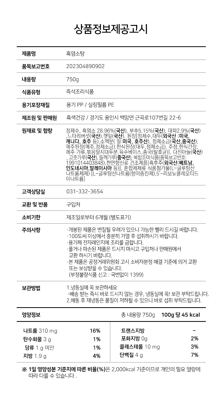 - Á¦Ç°¸í,½ÄǰÀÇ À¯Çü,»ý»êÀÚ ¹× ¼ÒÀçÁö µîÀº »óǰ »ó¼¼Á¤º¸¿¡ Ç¥½Ã µÇ¾î ÀÖ½À´Ï´Ù.
