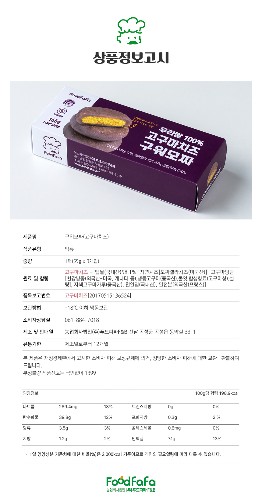 - Á¦Ç°¸í,½ÄǰÀÇ À¯Çü,»ý»êÀÚ ¹× ¼ÒÀçÁö,¿ë·®(Áß·®),¼ö·®,¿øÀç·á¸í ¹× ÇÔ·®,¼ÒºñÀÚ¾ÈÀüÀ» À§ÇÑ ÁÖÀÇ»çÇ×,¼ÒºñÀÚ»ó´ã °ü·Ã ÀüÈ­¹øÈ£ µîÀº »óǰ »ó¼¼Á¤º¸¿¡ Ç¥½Ã µÇ¾î ÀÖ½À´Ï´Ù.