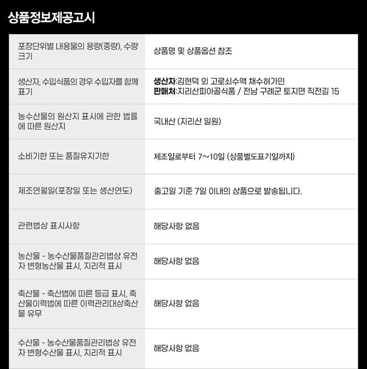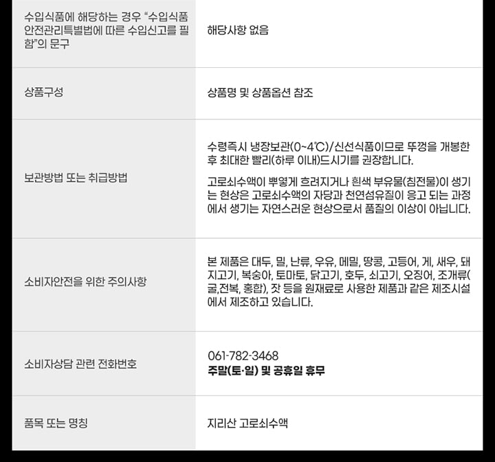 - ǰ¸ñ ¶Ç´Â ¸íĪ,¿ë·®(Áß·®),¼ö·®,Å©±â,»ý»êÀÚ,¿ø»êÁö,Á¦Á¶¿¬¿ùÀÏ,°ü·Ã¹ý»ó Ç¥½Ã»çÇ×,»óǰ±¸¼º,º¸°ü¹æ¹ý,¼Òºñ±âÇÑ,¼ÒºñÀÚ¾ÈÀüÀ» À§ÇÑ ÁÖÀÇ»çÇ×,¼ÒºñÀÚ»ó´ã °ü·Ã ÀüȹøÈ£ µîÀº »óǰ »ó¼¼Á¤º¸¿¡ Ç¥½Ã µÇ¾î ÀÖ½À´Ï´Ù.