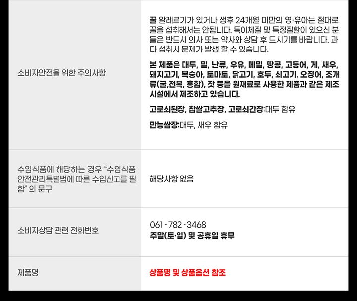 | ¼ÒºñÀÚ»ó´ã °ü·Ã ÀüȹøÈ£ | 061-782-3468 |