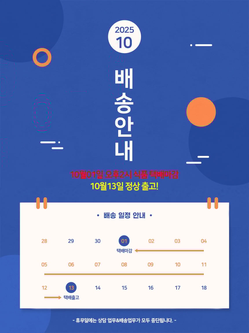 * ÀÌÈÄ ÁÖ¹®Àº 2025-10-13(¿ù)ºÎÅÍ ¹è¼ÛµË´Ï´Ù.