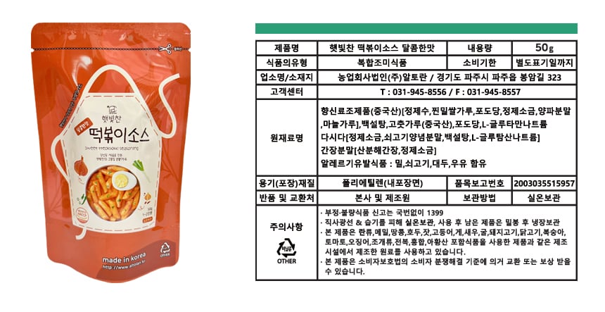 - Á¦Ç°¸í,½ÄǰÀÇ À¯Çü,»ý»êÀÚ ¹× ¼ÒÀçÁö,¿ë·®(Áß·®),¼ö·®,¿øÀç·á¸í ¹× ÇÔ·®,¼ÒºñÀÚ¾ÈÀüÀ» À§ÇÑ ÁÖÀÇ»çÇ×,¼ÒºñÀÚ»ó´ã °ü·Ã ÀüȹøÈ£,¿µ¾ç¼ººÐ,À¯ÀüÀÚº¯Çü½Äǰ,¼öÀÔ½Äǰ µîÀº »óǰ »ó¼¼Á¤º¸¿¡ Ç¥½Ã µÇ¾î ÀÖ½À´Ï´Ù.