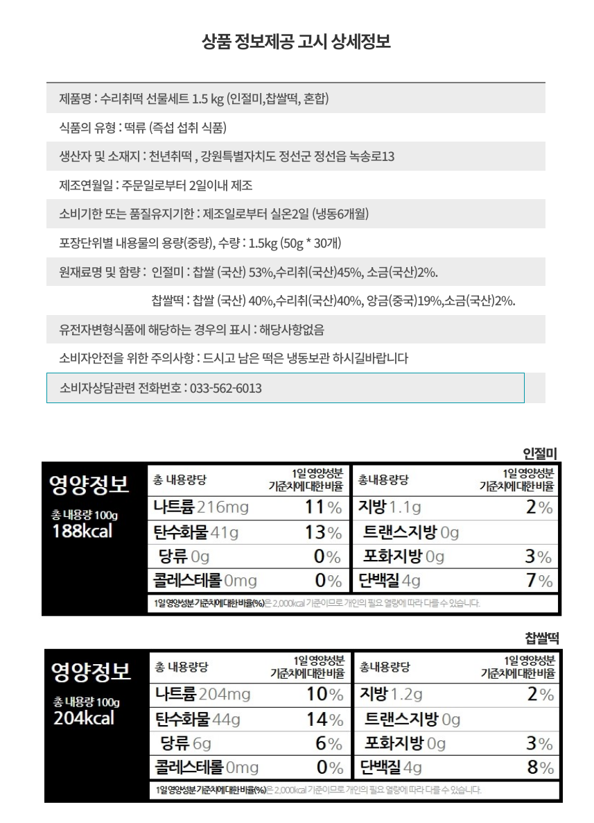 - Á¦Ç°¸í,½ÄǰÀÇ À¯Çü,»ý»êÀÚ ¹× ¼ÒÀçÁö,Á¦Á¶¿¬¿ùÀÏ,¼Òºñ±âÇÑ,¿ë·®(Áß·®),¼ö·®,¿øÀç·á¸í ¹× ÇÔ·®,¼ÒºñÀÚ¾ÈÀüÀ» À§ÇÑ ÁÖÀÇ»çÇ×,¼ÒºñÀÚ»ó´ã °ü·Ã ÀüȹøÈ£,¿µ¾ç¼ººÐ,À¯ÀüÀÚº¯Çü½Äǰ,¼öÀÔ½Äǰ µîÀº »óǰ »ó¼¼Á¤º¸¿¡ Ç¥½Ã µÇ¾î ÀÖ½À´Ï´Ù.