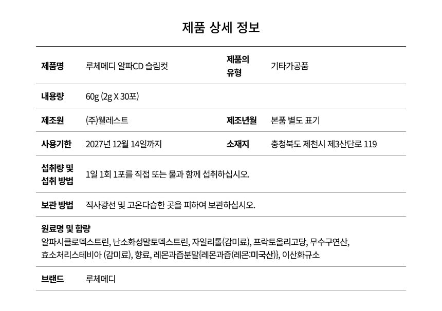 | ¿øÀç·á¸í ¹× ÇÔ·® | ¾ËÆÄ½ÃŬ·Îµ¦½ºÆ®¸°, ³¼Òȼº¸»Å䵦½ºÆ®¸°, ÀÚÀϸ®Åç(°¨¹Ì·á), ÇÁ¶ôÅä¿Ã¸®°í´ç, ¹«¼ö±¸¿¬»ê, È¿¼Ò󸮽ºÅ׺ñ¾Æ(°¨¹Ì·á), Çâ·á, ·¹¸ó°úÁóºÐ¸»{·¹¸ó°úÁó(·¹¸ó:¹Ì±¹»ê)} |