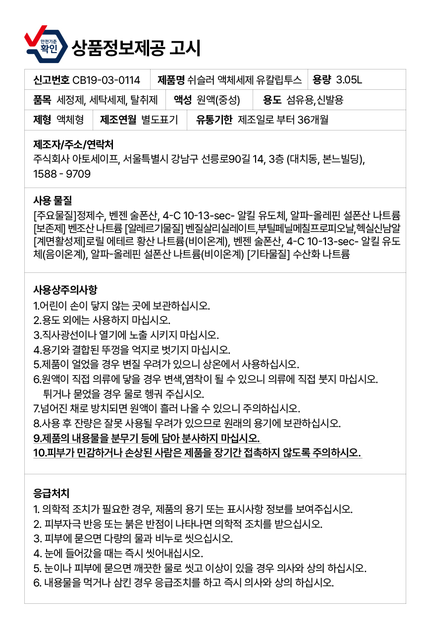 | ǰ¸ñ ¹× Á¦Ç°¸í | [½¬½½·¯] ¾×ü ¼¼Å¹¼¼Á¦ (¿¡ÀÌÇÁ¸± or ·ÎÁ¸® or À¯Ä®¸³Åõ½º) 3.05L 4°³ (3Á¾ ÅÃ1) |