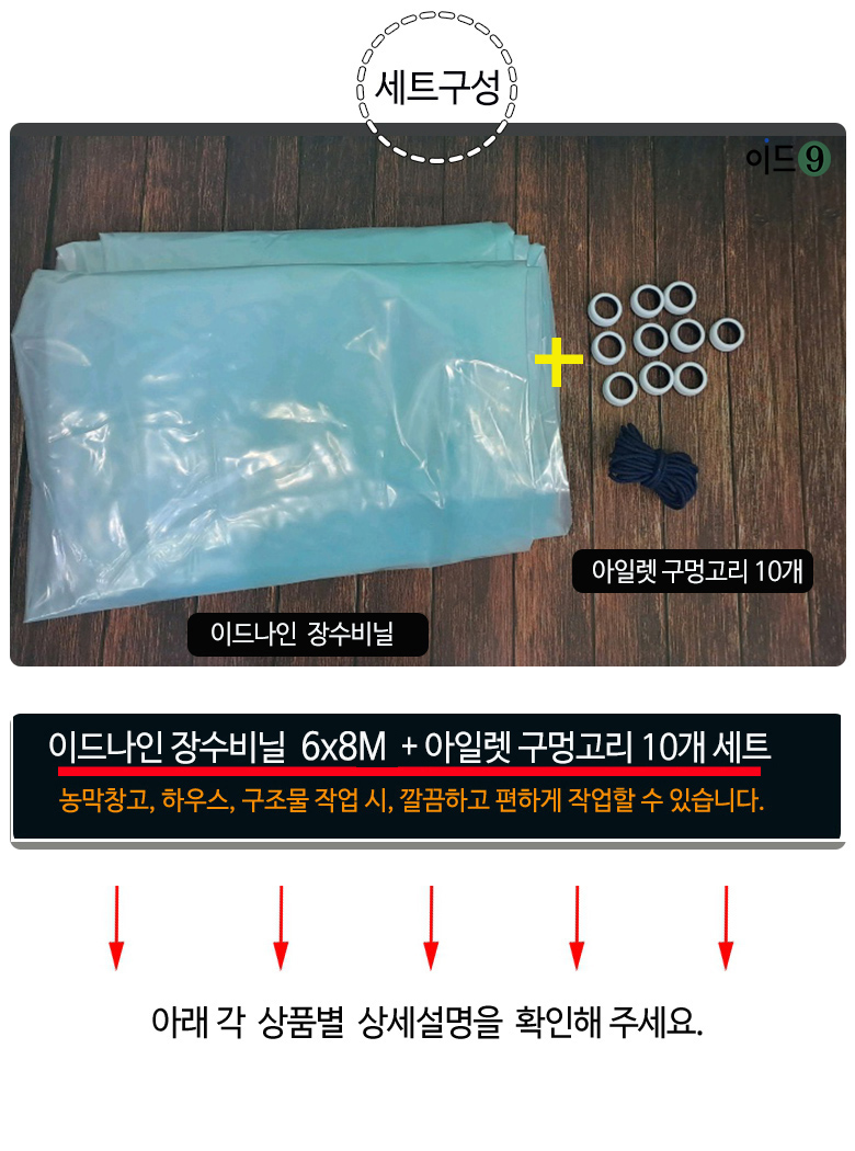 | ǰ¸í ¹× ¸ðµ¨¸í | À̵峪ÀÎ ³ó¸· ÇϿ콺Àå¼öºñ´Ò6x8M µÎ²²0.12+¾ÆÀÏ·¿°í¸®10°³ |