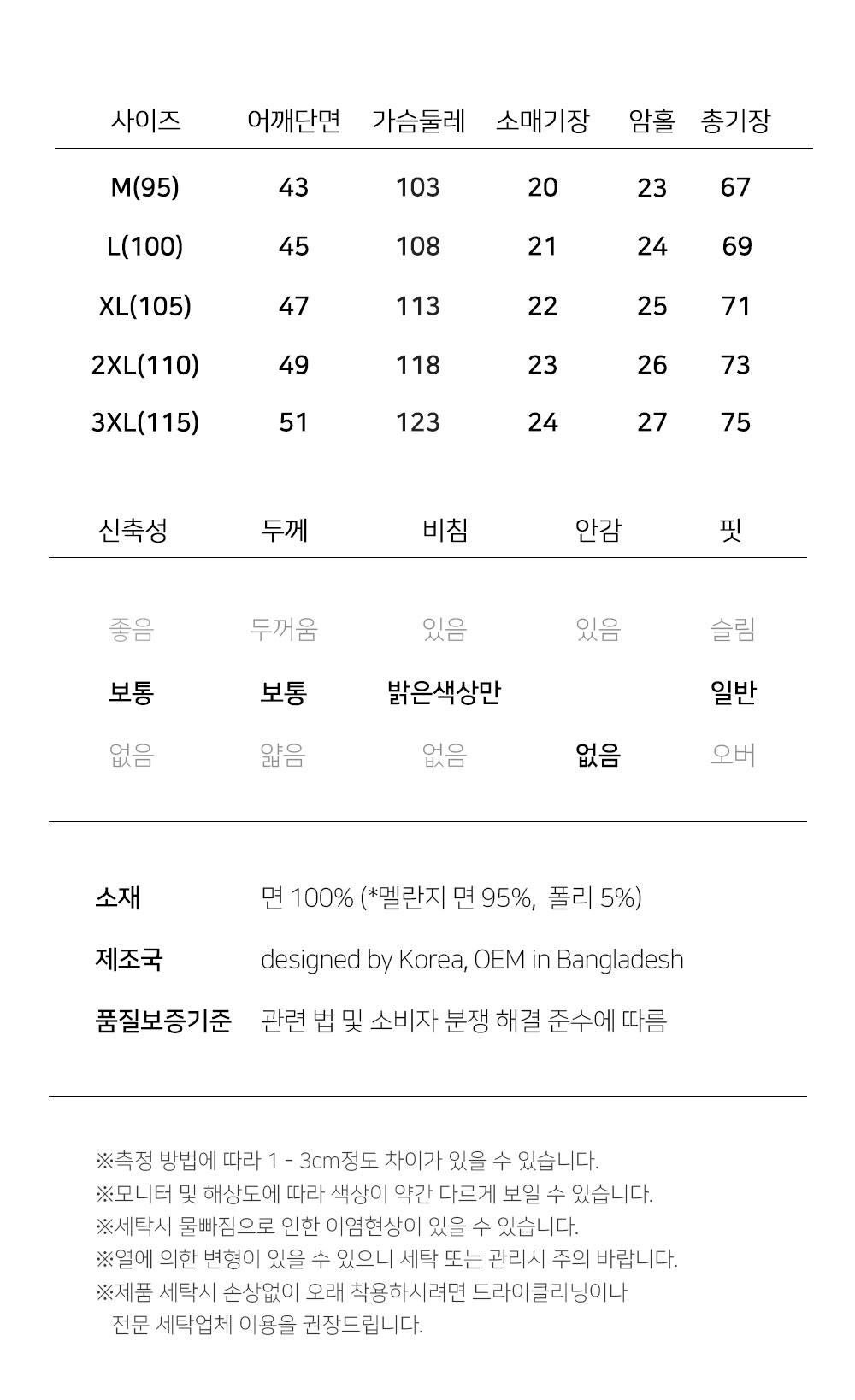 | Ä¡¼ö | M(95),L(100),XL(105),2XL(110),3XL(115) |