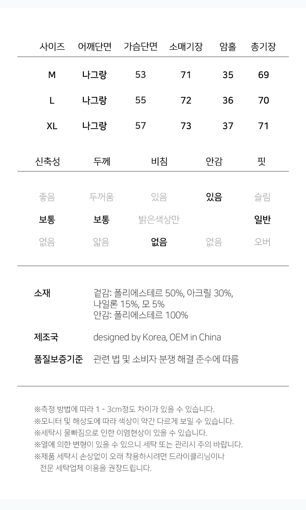 Ä¡¼ö | M(~95),L(~100),XL(~105) |