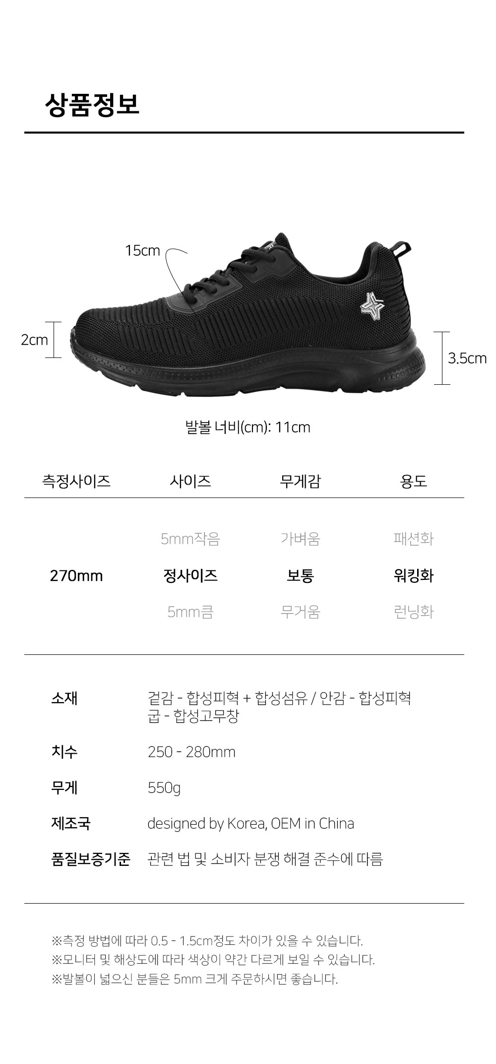 Ä¡¼ö ¹ß±æÀÌ : 250-280mm(´ÜÀ§:5mm) / ±Á³ôÀÌ : 3.5cm