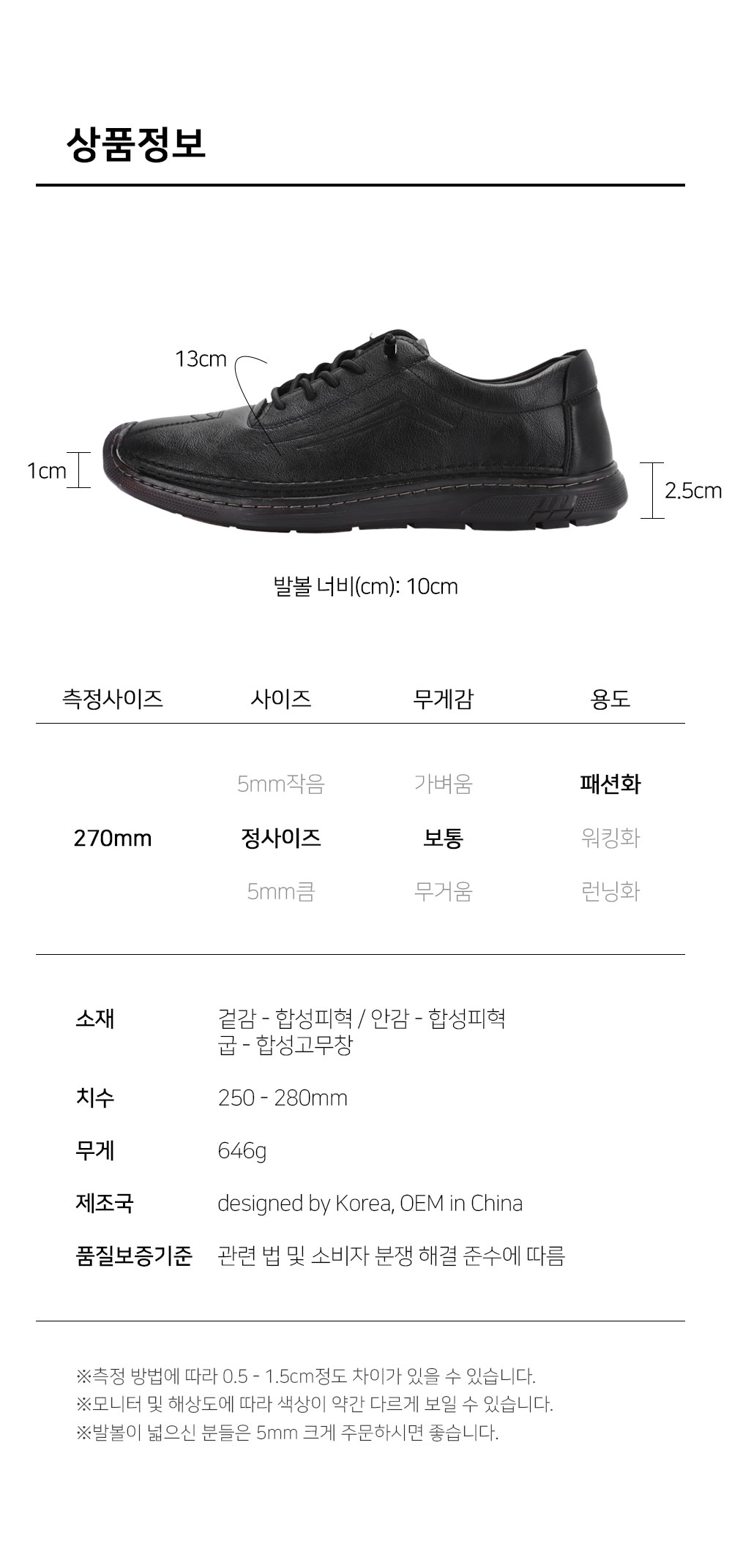 | Ä¡¼ö | ¹ß±æÀÌ : 250-280mm(´ÜÀ§:5mm) / ±Á³ôÀÌ : 2.5cm |