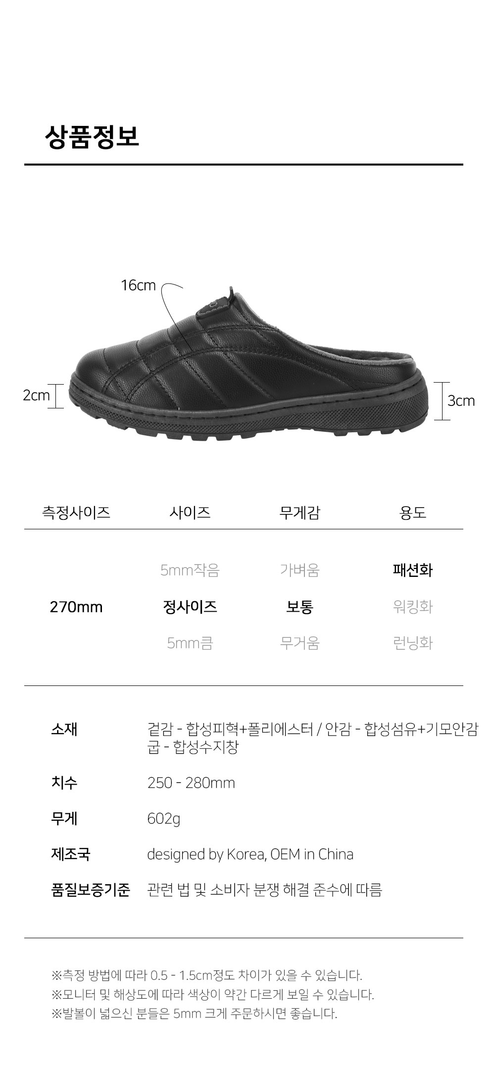 Ä¡¼ö | ¹ß±æÀÌ : 250-280mm(´ÜÀ§:5mm) / ±Á³ôÀÌ : 3cm |