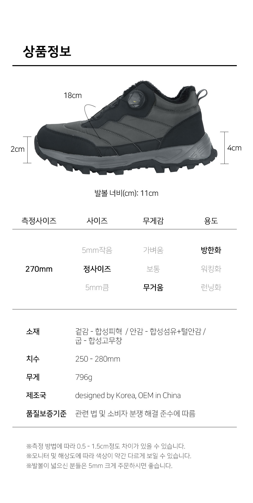 | Ä¡¼ö | ¹ß±æÀÌ : 250-280mm(´ÜÀ§:5mm) / ±Á³ôÀÌ : 4cm |