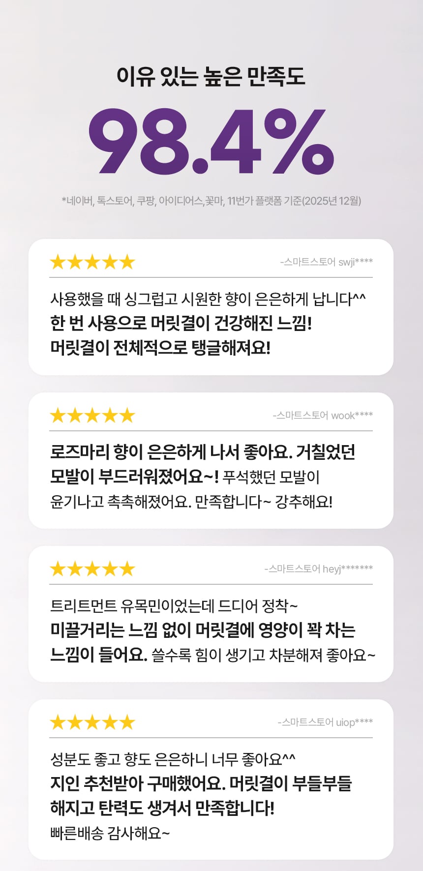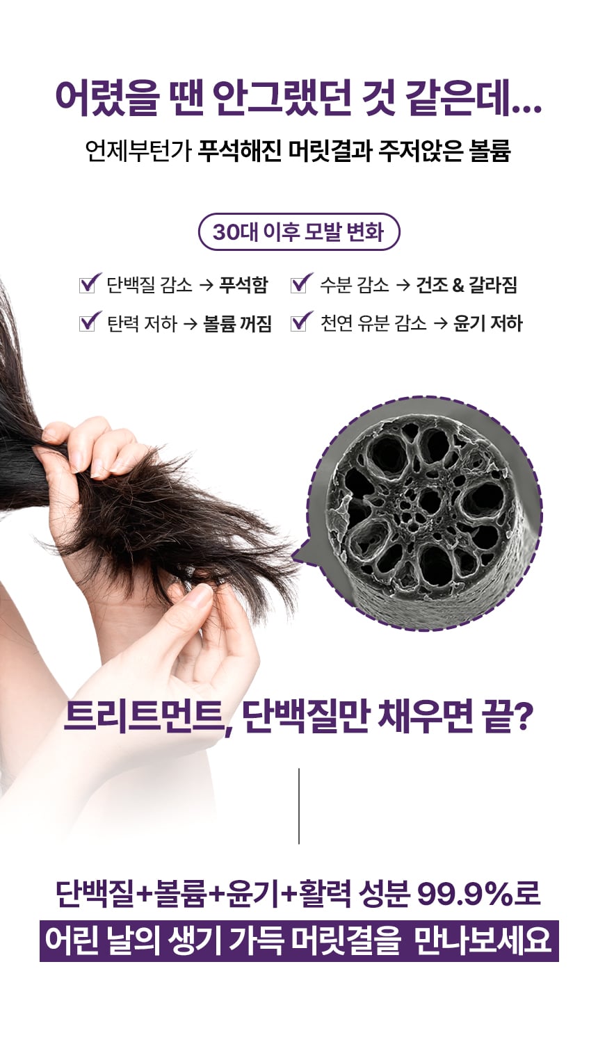 | Á¦Ç° ÁÖ¿ä »ç¾ç | One Treatment Bar 1. ¸ð¹ß¿¡ »ý±â¸¦ ÁÖ´Â ·ÎÁ¸® ¿¡¼¾¼È Æ÷¹Ä·¯ 2. ¿µ¾ç+À±±â+ź·Â 3 IN 1 ÄÄÇ÷º½º 3. õ¿¬¼ººÐ&½Ç¸®ÄÜ FREE 4. °í±Þ½º·¯¿î õ¿¬ Ç÷η² Çâ µÎÇÇÀÇ ¼øÈ¯À» µ½°í ¸ð¹ß ¼ºÀåÀÇ ÃÖÀûÀÇ ¿¡³ÊÁö¸¦ Àü´ÞÇÏ´Â ·ÎÁ¸® ¿¡¼¾¼È Æ÷¹Ä·¯¿Í ´õºÒ¾î, ¸ð¹ß °¡µæ ¿µ¾çÀ» ä¿öÁÙ Èí¼öÀ² ³ôÀº 3Á¾ÀÇ ÀúºÐÀÚ ´Ü¹éÁú ÄÄÇ÷º½º¿Í dzºÎÇÑ ¸®³î·»»ê°ú ºñŸ¹ÎE·Î ¸ð¹ß Ç¥¸éÀ» ÄÚÆÃÇØ À±±â¸¦ ¼±»çÇÏ´Â ½Ä¹°¼º 3Áß ÄÚÆÃ±îÁö! ¼ººÐµµ ¾È½É! ¾ó±¼ ¸ð°øº¸´Ù Å« µÎÇÇ ¸ð°ø¿¡ Èí¼öµÇ´Â ¼ººÐÀθ¸Å ²Ä²ÄÇÏ°Ô °í¸£°í, °Ç°ÇÏ°Ô ¼±ÅÃÇß½À´Ï´Ù. ¿ø Æ®¸®Æ®¸ÕÆ® ¹Ù´Â õ¿¬ ¼ººÐ º£À̽º¿¡ ¸ð¹ß 3Áß À¯ÇؼººÐ FREE·Î µ¥Àϸ® ¾ÈÀüÇÏ°í °Ç°ÇÏ°Ô »ç¿ë °¡´ÉÇÕ´Ï´Ù. ´õºÒ¾î °í±Þ½º·¯¿òÀ» ´õÇϴ õ¿¬ÀÇ Ç³¼ºÇÑ Ç÷η²Çâ±îÁö Á÷Á¢ ´À²¸º¸¼¼¿ä |