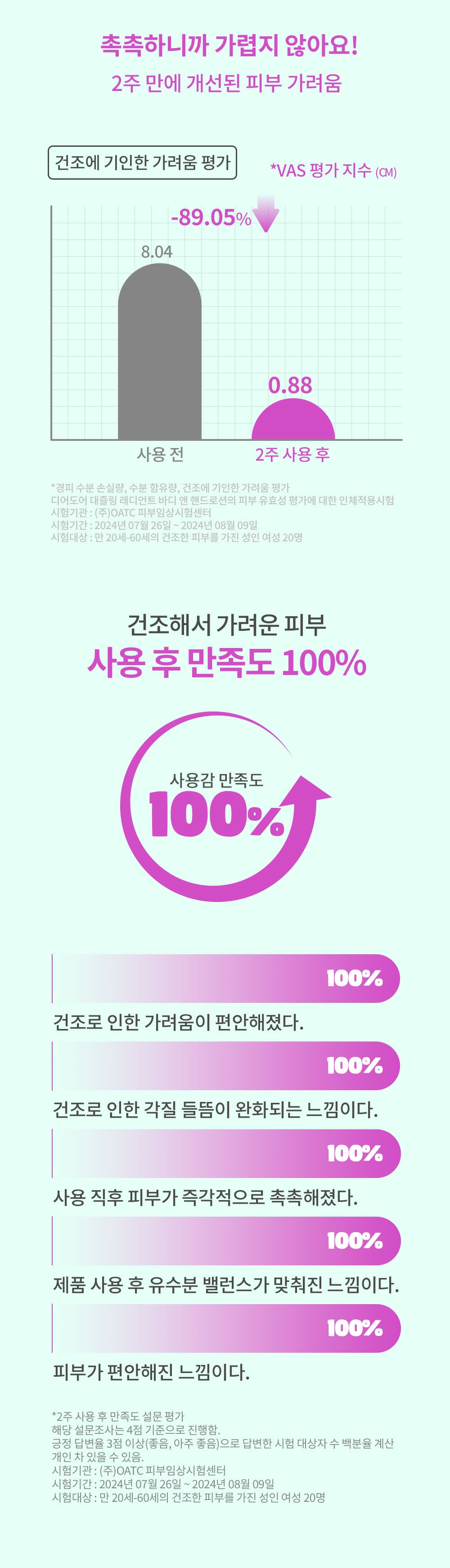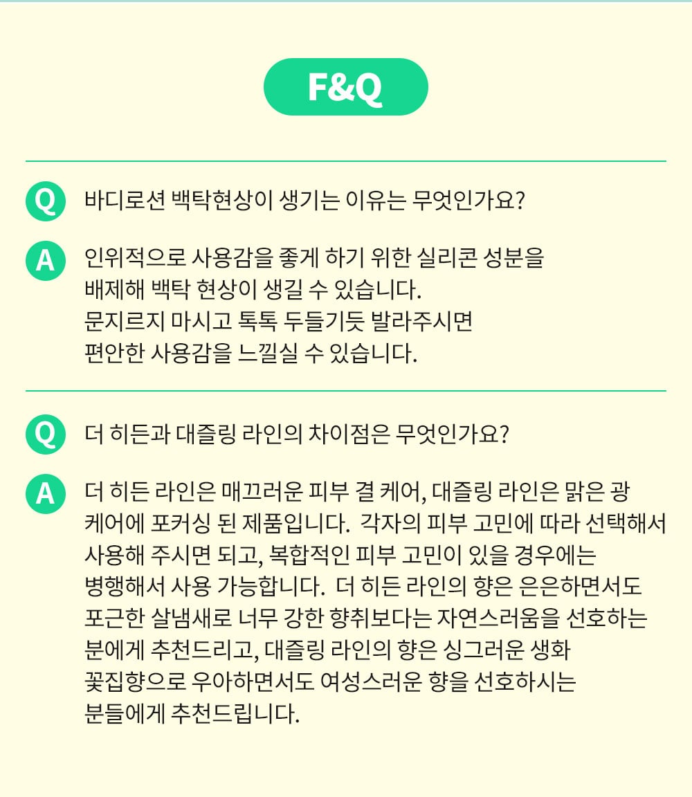| »ç¿ëÇÒ ¶§ ÁÖÀÇ»çÇ× | 1) ÈÀåǰ »ç¿ë ½Ã ¶Ç´Â »ç¿ë ÈÄ Á÷»ç±¤¼±¿¡ ÀÇÇÏ¿© »ç¿ëºÎÀ§°¡ ºÓÀº ¹ÝÁ¡, ºÎ¾î¿À¸§ ¶Ç´Â °¡·Á¿òÁõ µîÀÇÀÌ»ó Áõ»óÀ̳ª ºÎÀÛ¿ëÀÌ ÀÖ´Â °æ¿ì¿¡´Â Àü¹®ÀÇ µî°ú »ó´ãÇÒ °Í2) »óó°¡ ÀÖ´Â ºÎÀ§ µî¿¡´Â »ç¿ëÀ» ÀÚÁ¦ÇÒ °Í3) º¸°ü ¹× Ãë±Þ ½Ã ÁÖÀÇ»çÇ×°¡) ¾î¸°ÀÌÀÇ ¼ÕÀÌ ´êÁö ¾Ê´Â °÷¿¡ º¸°üÇÒ °Í ³ª) Á÷»ç±¤¼±À» ÇÇÇØ¼ º¸°üÇÒ °Í ´Ù) º¸°ü ÁßÀÎ ³»¿ë¹°¿¡ ¹°ÀÌ µé¾î°¡Áö ¾Êµµ·Ï ÁÖÀÇÇÒ °Í4) Á¦Ç° »ç¿ë Àü(¿ÞÆÈ ¾ÈÂÊ ºÎÀ§¿¡) ÆÐÄ¡ Å×½ºÆ® ÈÄ »ç¿ëÇÒ °Í5) ¾ó±¼À» Á¦¿ÜÇÑ ºÎÀ§¿¡ »ç¿ëÇÒ °Í6) ½Ä¹° À¯·¡ ¼ººÐÀ¸·Î ÀÎÇØ »ö»óÀÌ º¯ÇÒ ¼ö ÀÖÀ½ |