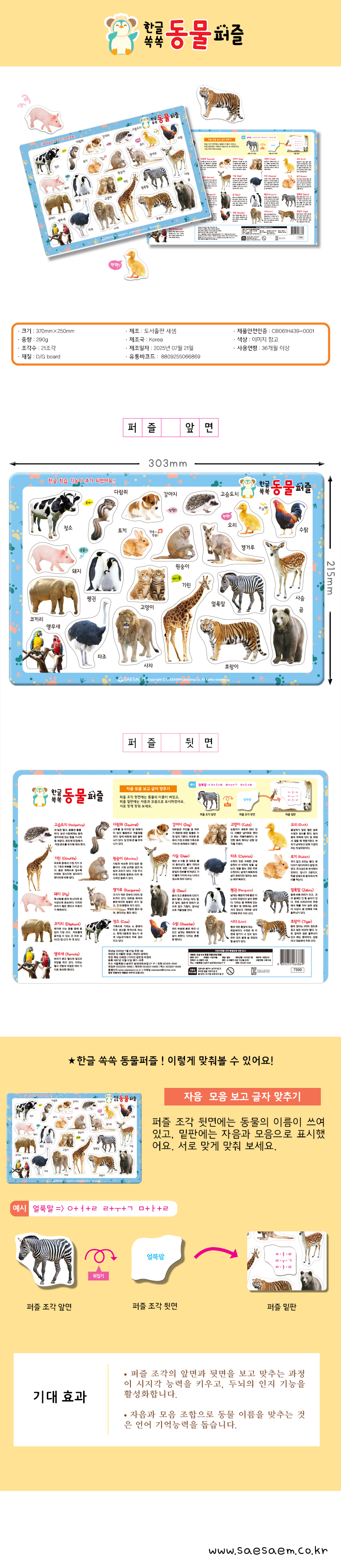 - ÆÛÁñ µÞ¸é¿¡ °¢ µ¿¹°ÀÇ ¼³¸íÀÌ ÀÖ¾î ±âÃÊ Áö½Ä¿¡ µµ¿òÀÌ µÇ´Â ÆÛÁñ ³îÀ̸¦ Áñ±æ ¼ö ÀÖ½À´Ï´Ù.