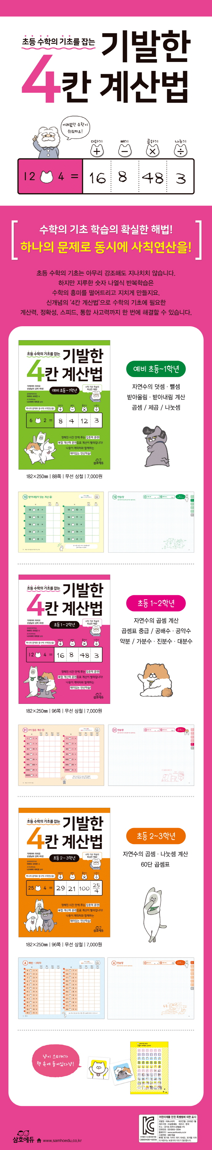ÃÊµî ¼öÇÐÀÇ ±âÃÊ´Â ¾Æ¹«¸® °Á¶Çصµ Áö³ªÄ¡Áö ¾Ê½À´Ï´Ù. ÇÏÁö¸¸ Áö·çÇÑ ¼ýÀÚ ³ª¿½Ä ¹Ýº¹ÇнÀÀº ¼öÇÐÀÇ Èï¹Ì¸¦ ¶³¾îÆ®¸®°í ÁöÄ¡°Ô ¸¸µéÁö¿ä. ½Å°³³ä ¡®4Ä °è»ê¹ý¡¯À¸·Î ¼öÇÐÀÇ ±âÃÊ¿¡ ÇÊ¿äÇÑ °è»ê·Â, Á¤È®¼º, ÅëÇÕ »ç°í·Â±îÁö ÇÑ ¹ø¿¡ ÇØ°áÇÒ ¼ö ÀÖ½À´Ï´Ù!
