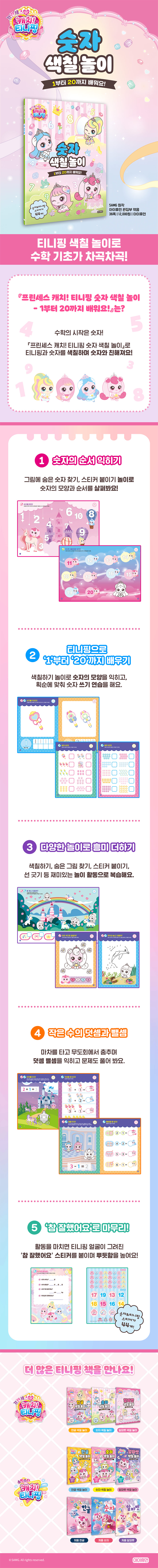 ¾ÆÀÌÈÞ¸ÕÀº ¡´Ä³Ä¡! Ƽ´ÏÇΡµÀÇ Àü ½ÃÁð¿¡ °ÉÃÄ ´Ù¾çÇϰí Àç¹ÌÀÖ´Â ÇнÀ ¹× Àб⠵µ¼¸¦ Ãâ°£ÇØ ¿Ô½À´Ï´Ù. À̹ø¿¡ Æì³»´Â ¡ºÇÁ¸°¼¼½º ijġ! Ƽ´ÏÇÎ ¼ýÀÚ »öÄ¥ ³îÀÌ¡»´Â ¸¸ 3, 4¼¼ÀÇ À¯¾ÆµéÀ» À§ÇØ ÃֽнÃÁð ij¸¯ÅÍÀÎ ÇÁ¸°¼¼½ºÆ¼´ÏÇεéÀÌ »öÄ¥Çϱ⠳îÀÌ·Î ¼ýÀÚ ±âÃʸ¦ ¾Ë·Á Áִ åÀÔ´Ï´Ù. ¾î¸°À̵éÀº °¡Àå ÁÁ¾ÆÇϴ Ƽ´ÏÇΰú ÇÔ²² ¼öÀÇ °³³äÀ» ÀÍÈ÷¸ç Àç¹ÌÀÖ°Ô ¼ýÀÚ¿¡ ´Ù°¡°¡°í ÀÚ¿¬½º·¹ ¼öÇп¡ Àç¹Ì¸¦ ´À³¢°Ô µÉ °ÍÀÔ´Ï´Ù.