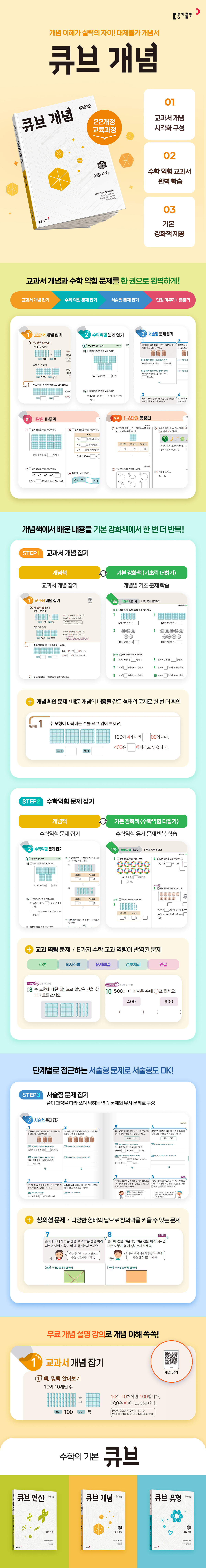 Ã¥¼Ò°³¡´Å¥ºê °³³ä¡µÀº ±³°ú¼ °³³äÀ» ´ÙÀâÀ» ¼ö ÀÖ´Â ±âº»¼ÀÌ´Ù. ƯÈ÷, ±³°ú¼ °³³äÀ» ½Ã°¢ÈÇÏ¿© ½±°Ô ÀÌÇØÇÒ ¼ö ÀÖµµ·Ï ±¸¼ºÇÏ¿´°í, ¼öÇÐ ÀÍÈû ±³°ú¼ ¹®Á¦ À¯ÇüÀ» ¿Ïº®ÇÏ°Ô ÇнÀÇÒ ¼ö ÀÖ´Ù. ¼¼úÇü ¹®Á¦´Â Ç®ÀÌ °úÁ¤À» µû¶ó ¾²¸ç ÀÍÈ÷´Â ¿¬½À ¹®Á¦¿Í À¯»ç ¹®Á¦·Î ±¸¼ºµÇ¾î ÀÖ¾î ´Ü°èº°·Î ¼¼úÇü ÇнÀÀÌ °¡´ÉÇÏ´Ù. ¶Ç, ±âÃÊ ¿¬»ê°ú ¼öÇÐ ÀÍÈû À¯»ç ¹®Á¦¸¦ º¹½ÀÇÒ ¼ö ÀÖ´Â ±âº» °ÈÃ¥À» ºÎ·ÏÀ¸·Î Á¦°øÇÑ´Ù.