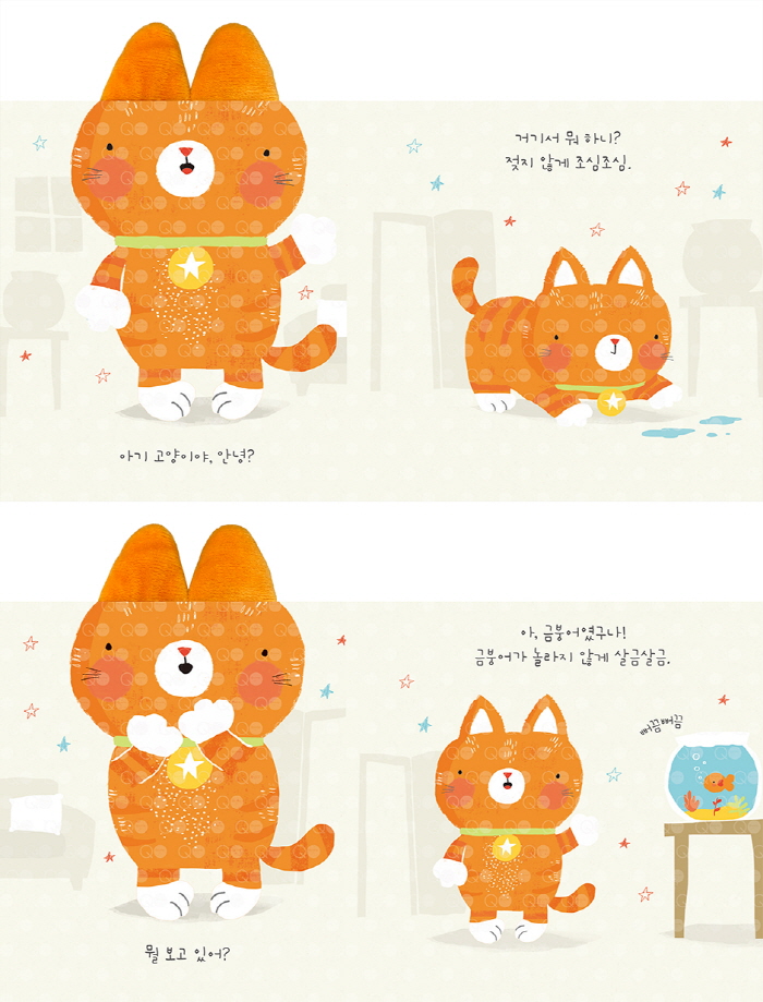 ¡´È£±â½É²Ù·¯±â ¾Æ±â °í¾çÀÌ¡µ´Â È£±â½É °¡µæÇÑ ¾Æ±â °í¾çÀÌÀÇ Àϰú¸¦ º¸¿© ÁÖ´Â ³îÀÌ ±×¸²Ã¥ÀÌ¿¡¿ä. ¹Ù´Ú¿¡ ¶³¾îÁø ¸î ¹æ¿ïÀÇ ¹°µµ ±×³É Áö³ªÄ¡Áö ¸øÇϰí ÷º¡´ë´Â ¸ð½ÀÀ̳ª ±ä ÁÙÀ» µû¶ó ¹ß°ßÇÑ ½Ç¹¶Ä¡·Î Áñ°Ì°Ô ³î¸ç ÇϷ縦 º¸³»´Â ¾Æ±â °í¾çÀÌÀÇ ¸ð½ÀÀº, ´«¾Õ¿¡ º¸ÀÌ´Â ¸ðµç °ÍÀÌ Àå³°¨ÀÌ µÇ¾î ³ë´Â ¿ì¸® ¾Æ±âµéÀÇ ¸ð½À°ú ´à¾Æ ´õ¿í Ä£±Ù°¨À» ºÒ·¯ÀÏÀ¸Å°Áö¿ä. ¡®»µ²û»µ²û.¡¯ ¡®°¡¸£¶û°¡¸£¶û.¡¯ µî ¸®µë°¨ ³ÑÄ¡´Â ±Û°ú ¹à°í ´Ùä·Î¿î »ö°¨ÀÇ °í¾çÀÌ Ä³¸¯ÅÍ´Â ¾î¸° ¾Æ±âµéµµ À̾߱⿡ Èì»¶ ºüÁ®µé ¼ö ÀÖ°Ô ÇÕ´Ï´Ù. ƯÈ÷ ¸¶Áö¸· Àå¸é¿¡¼ Æ÷±ÙÇÑ ¾ö¸¶ ǰ¿¡ ½ï ¾È°Ü ÀÖ´Â ¸ð½ÀÀº, ¾ö¸¶¿Í ¾ÆÀÌÀÇ ¾ÖÂø °ü°è¸¦ Çü¼ºÇÒ ¼ö ÀÖµµ·Ï µµ¿Í Á¤¼ ¹ß´Þ¿¡µµ Å« µµ¿òÀ» ÁÖÁö¿ä. ´Ü¼øÇÏÁö¸¸ ÀÏ»óÀûÀÎ ¸ð½ÀÀ» ±Í¿±°í Æí¾ÈÇÏ°Ô ±×¸° ÀÌ Ã¥Àº, ¾Æ±â¿Í ¾ö¸¶ ¸ðµÎ°¡ °ø°¨Çϸç ÇÔ²² ÀÐÀ» ¼ö ÀÖ´Â ±Í¿©¿î ³îÀÌ º¸µåºÏÀÔ´Ï´Ù.