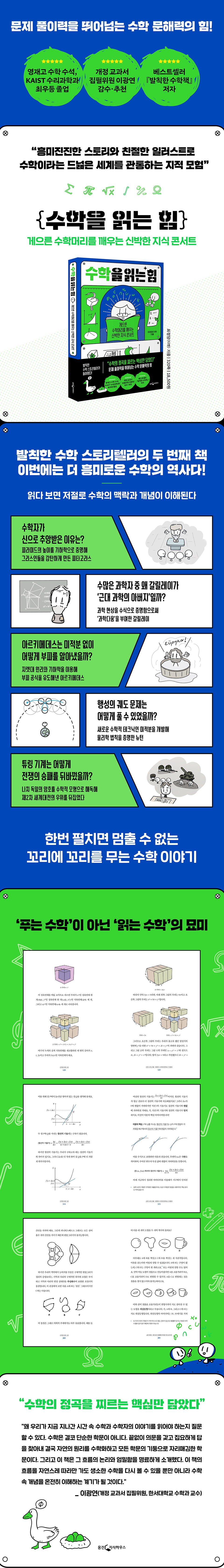¼öÇл縦 ÅëÇØ ¿ì¸®°¡ ¾Ë¾Æ¾ß ÇÏ´Â °ÍµéÀº ±×¸® ´Ü¼øÄ¡ ¾Ê´Ù. ÀÌ Ã¥Àº ±³°ú¼¿¡¼ ½±°Ô ¸¶ÁÖÇÏ°í ¿Ü¿ì´Â ¼ö¸¹Àº °ø½ÄÀÇ Åº»ý°ú °³³ä, ±× ³Ê¸Ó±îÁö ÇâÇÑ´Ù. ¡®¼öÇÐÀ̶õ ¾î·Á¿î ¹®Á¦¸¦ ¼ø½Ä°£¿¡ Ç®¾î³»´Â °Í¡¯À̶ó´Â ÇÔÁ¤¿¡¼ ºüÁ®³ª¿Í ³¸¼± ¼¼°è¸¦ ŽÇèÇÏ´Â ¸¶À½À¸·Î Àд´ٸé, ´õ ±íÀÌ ÀÖ´Â ½Ã¼±À¸·Î ¼¼»óÀ» ¹Ù¶óº¼ ¼ö ÀÖÀ» °ÍÀÌ´Ù. |