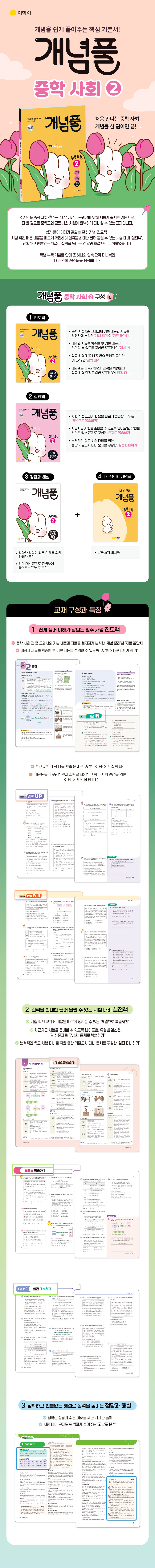 Ã¥¼Ò°³¡®°³³äÇ® ÁßÇÐ »çȸ ¨è¡¯´Â 2022 °³Á¤ ±³À°°úÁ¤¿¡ ¸ÂÃç »õ·Ó°Ô Ãâ½ÃÇÑ ±âº»¼·Î, ´Ü ÇÑ ±ÇÀ¸·Î ÁßÇб³ÀÇ ¸ðµç »çȸ ½ÃÇè¿¡ ¿Ïº®ÇÏ°Ô ´ëºñÇÒ ¼ö ÀÖ´Â ±³ÀçÀÔ´Ï´Ù. ±³°ú¼ ÇÙ½É °³³ä°ú °ü·ÃµÈ ´Ù¾çÇÑ ÀڷḦ À¯±âÀûÀ¸·Î ¹èÄ¡ÇÏ¿© ÇнÀ È¿°ú¸¦ ÃÖÀûȽÃų ¼ö ÀÖµµ·Ï ±¸¼ºÇÏ¿´½À´Ï´Ù. ÇлýµéÀÌ ¾î·Á¿î »çȸ °³³äÀ» ÀÚ·á¿Í ÇÔ²² ½±°Ô ÀÌÇØÇÒ ¼ö ÀÖµµ·Ï µµ¿ÍÁÖ´Â ±³ÀçÀÔ´Ï´Ù. ½±°Ô Ç®¾î ÀÌÇØ°¡ ÀߵǴ Çʼö °³³ä ¡®ÁøµµÃ¥¡¯, ½ÃÇè Á÷Àü ¹è¿î ³»¿ëÀ» ºü¸£°Ô È®ÀÎÇÏ¿© ½Ç·ÂÀ» ÃÖ´ëÇÑ ²ø¾î ¿Ã¸± ¼ö ÀÖ´Â ½ÃÇè ´ëºñ ¡®½ÇÀüÃ¥¡¯, Á¤È®ÇÏ°í ºóÆ´¾ø´Â ÇØ¼³·Î ½Ç·ÂÀ» ³ôÀÌ´Â ¡®Á¤´äÃ¥¡¯À¸·Î ±¸¼ºÇÏ¿´½À´Ï´Ù. Ưº° ºÎ·Ï °³³äÇ® ¾È¿¡ ¶Ç ÇϳªÀÇ ¾ÐÃà ¿ä¾à ¹Ì´ÏºÏÀÎ ¡®³» ¼Õ¾È¿¡ °³³äÇ®¡¯À» Á¦°øÇÕ´Ï´Ù.