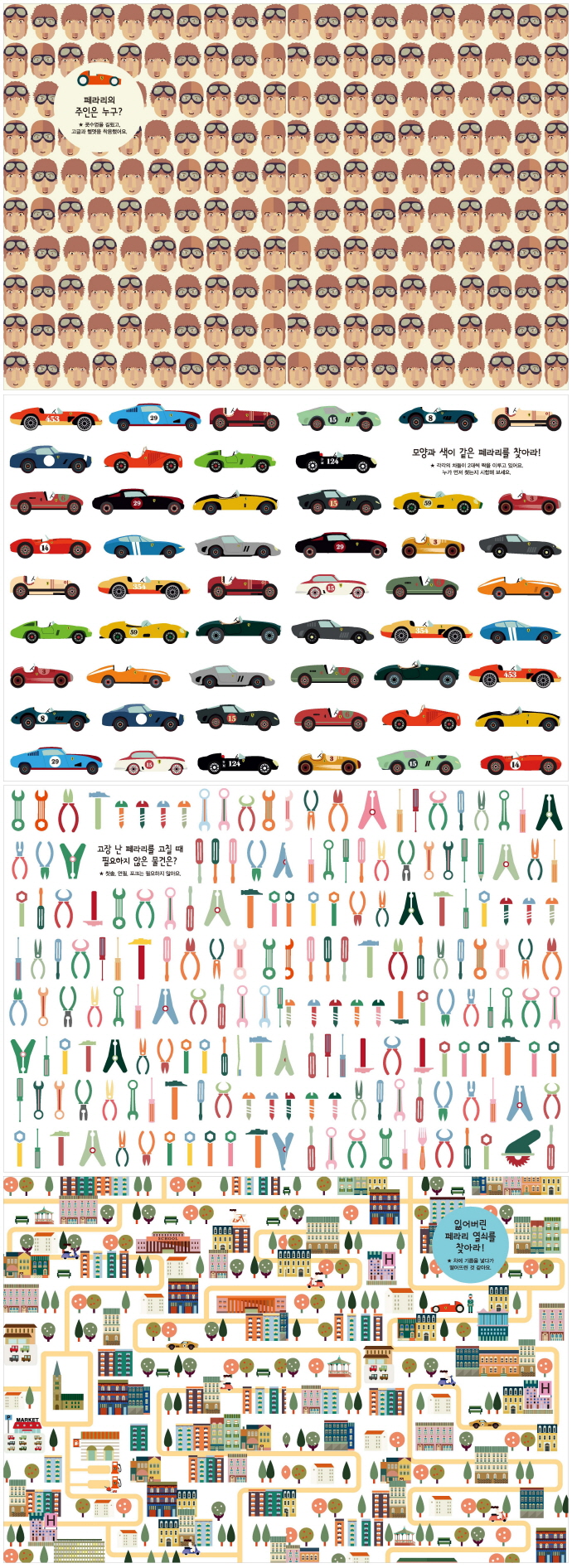 Æä¶ó¸®¸¦ »ó¡ÇÏ´Â »¡°£»ö ½ºÆ÷Ã÷Ä«´Â ¹°·Ð, Æä¶ó¸® ÀÚµ¿Â÷ÀÇ ÇÚµé, ÈÙ µî ÀÚµ¿Â÷ÀÇ »ó¼¼ÇÑ ºÎºÐ±îÁö °¨°¢ÀûÀÎ ÆÐÅϰú °ú°¨ÇÑ »öäÀÇ ÀÏ·¯½ºÆ®·Î ¸¸³ª º¼ ¼ö ÀÖ½À´Ï´Ù. ºñ½ÁÇÑ ±×¸²µé »çÀÌ¿¡¼ Â÷ÀÌÁ¡À» ã´Â ¼ûÀº±×¸²Ã£±â¸¦ Æ÷ÇÔÇÏ¿© °°Àº ±×¸² ã¾Æ ¿¬°áÇϱâ, ¸ð¾çÀÌ ´Ù¸¥ ±×¸² ã±â, ¼ýÀÚ ¼¼±â, Ç÷¦ ¿±â µî ¾ÆÀ̵éÀÇ ÁýÁ߷°ú »ç°í·Â, ÀÎÁö·ÂÀ» Çâ»ó½ÃÄÑ ÁÖ´Â ´Ù¾çÇϰí Àç¹ÌÀִ Ȱµ¿ÀÌ °¡µæÇÕ´Ï´Ù.