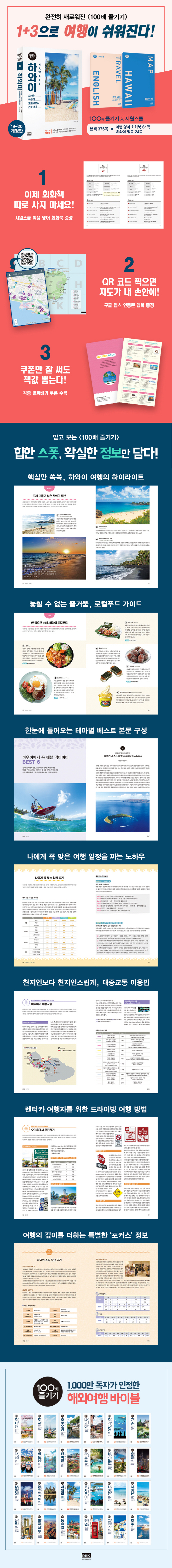 Àü¸é °³Á¤À» ¸Â¾Æ º»Ã¥ µðÀÚÀÎÀ» ±ò²ûÇÏ°Ô ¸®´º¾óÇß´Ù. ³»¿ëÀº ÇÙ½ÉÀ» À§ÁÖ·Î °£Ã߸®°í ÇÏ¿ÍÀÌÀÇ ¸Å·ÂÀ» ÃæºÐÈ÷ º¸ÀÏ ¼ö ÀÖµµ·Ï »çÁøÀ» ½Ã¿øÇÏ°Ô ¹èÄ¡ÇÏ¿© ¡®º¸´Â ¸À¡¯À» ì±â°íÀÚ ³ë·ÂÇß´Ù. ÀÛ°¡°¡ Á÷Á¢ ÃëÀçÇÑ »ý»ýÇÑ Á¤º¸´Â ½Ã½Ã°¢°¢ º¯ÇÏ´Â ÇöÁöÀÇ »çÁ¤À» ÃÖ´ëÇÑ °í·ÁÇÏ¿© ¿©·¯ Â÷·Ê È®ÀÎÀ» °ÅÄ£ ÈÄ Ã¥¿¡ ½Ç¾ú´Ù. À̹ø °³Á¤ÆÇÀÇ Æ¯Â¡Àº ¿©±â¼ ³¡ÀÌ ¾Æ´Ï´Ù. ³»¿ëÀ» Ãæ½ÇÈ÷ ´ÙÁø º»Ã¥¿¡ ´õÇØ ±¹³» 1À§ ¾îÇÐ ºê·£µå ½Ã¿ø½ºÄðÀÌ °¨¼öÇÑ ¿©Çà ¿µ¾î ȸȺÏ, ±×¸®°í ±¸±Û ¸Ê½º·Î ¿¬µ¿µÇ´Â QR Äڵ带 ¼ö·ÏÇÑ ÇÏ¿ÍÀÌ ¸ÊºÏ, ¸¶Áö¸·À¸·Î ÇöÁö¿¡¼ °ð¹Ù·Î »ç¿ëÇÒ ¼ö ÀÖ´Â ÄíÆùºÏ±îÁö ÇÔ²² ¿«¾ú´Ù. ´õ¿í ¾ËÂ÷°Ô º¯ÇÑ ¡¶ÇÏ¿ÍÀÌ 100¹è Áñ±â±â¡· Ãֽа³Á¤ÆÇÀº źźÇÑ ±¸¼º°ú ¾ËÂù ³»¿ëÀ¸·Î ±× µ¿¾È ²Þ²ã ¿Â ¿©ÇàÀ» µ¶Àڵ鿡°Ô ¼±¹°ÇÑ´Ù.