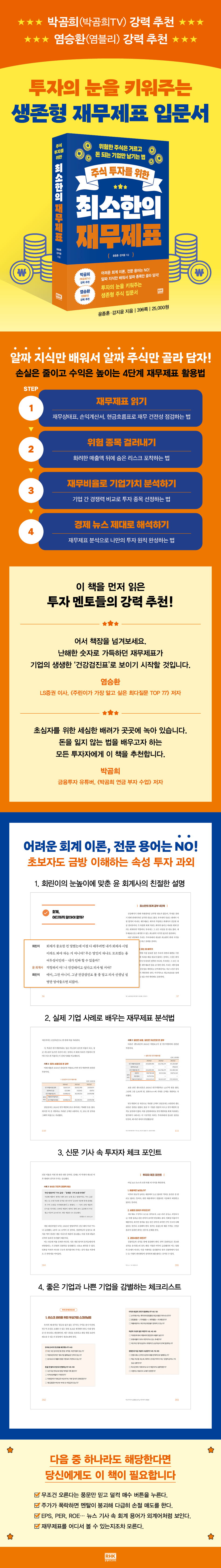 ¡¶ÁÖ½Ä ÅõÀÚ¸¦ À§ÇÑ ÃÖ¼ÒÇÑÀÇ À繫Á¦Ç¥¡·´Â ¾î·Æ°í º¹ÀâÇÏ´Ù´Â ÀÌÀ¯·Î À繫Á¦Ç¥ ºÐ¼®À» °Ç³Ê¶Ù´Â »ç¶÷µéÀ» À§ÇÑ Ã¥ÀÌ´Ù. ¿ì¼± ¿ë¾î¸¦ ½±°Ô Ç®¾ú´Ù. ³¸¼± ȸ°è ¿ë¾î ´ë½Å ÀÏ»óÀÇ ¾ð¾î·Î ¼³¸íÇØ ÀÌÇØµµ¸¦ ³ô¿´´Ù. ´ÙÀ½À¸·Î ¹«¾ù¿¡ ÁÖ¸ñÇÏ¸é µÇ´ÂÁö ¹üÀ§¸¦ Á¼ÇôÁØ´Ù. ¹æ´ëÇÑ À繫Á¦Ç¥ÀÇ Ç׸ñ Áß¿¡¼ ÅõÀÚ ÆÇ´Ü¿¡ ²À ÇÊ¿äÇÑ Çٽɸ¸ ¼±º°Çß´Ù.