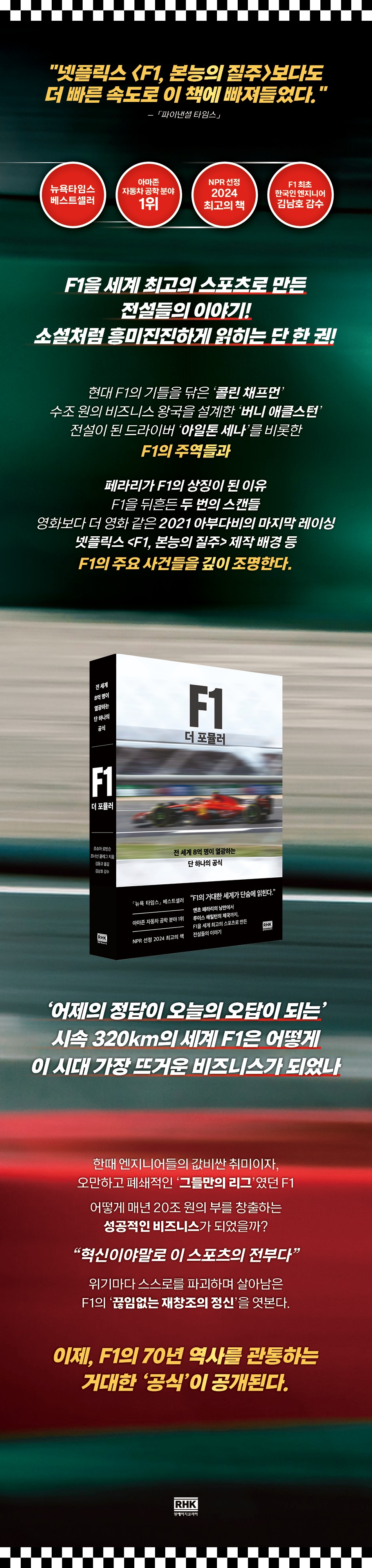 ¡ºF1 ´õ Æ÷¹Ä·¯¡»´Â F1À» ¼¼°è Á¤»óÀ¸·Î ²ø¾î¿Ã¸° ÁÖ¿ªµé°ú ±×µéÀÌ ºú¾î³½ ¿ª»çÀû ¼ø°£µéÀ» ¼Ò¼³Ã³·³ »ý»ýÇÏ°Ô ±×·Á³½´Ù. Çö´ë F1ÀÇ ±âƲÀ» ´ÛÀº õÀç ¿£Áö´Ï¾î ¡®Äݸ° äÇÁ¸Õ¡¯°ú ÀüÅëÀ» Çõ½ÅÀ¸·Î ½ÂÈÇÑ ¡®¿£ÃÊ Æä¶ó¸®¡¯, ÀÌ ¸ðµç È¥µ· À§¿¡ ¼öÁ¶ ¿øÀÇ ºñÁî´Ï½º ¿Õ±¹À» ¼³°èÇÑ ¡®¹ö´Ï ¾ÖŬ½ºÅÏ¡¯, ±×¸®°í ¿µ¿øÇÑ Àü¼³ ¡®¾ÆÀÏÅæ ¼¼³ª¡¯¿Í Çö´ëÀÇ Áö¹èÀÚ ¡®·çÀ̽º ÇØ¹ÐÅÏ¡¯±îÁö. ±Ç·Â ´ÙÅù°ú ´ë´ãÇÑ µµ¹Ú, ¼¼±âÀÇ ¶óÀ̹úÀüÀÌ µÚ¼¯ÀÎ ÀÌ µå¶ó¸¶Æ½ÇÑ ¿©Á¤Àº F1ÀÇ 70³â ¿ª»ç¸¦ ´Ü¼û¿¡ °üÅëÇÑ´Ù.
