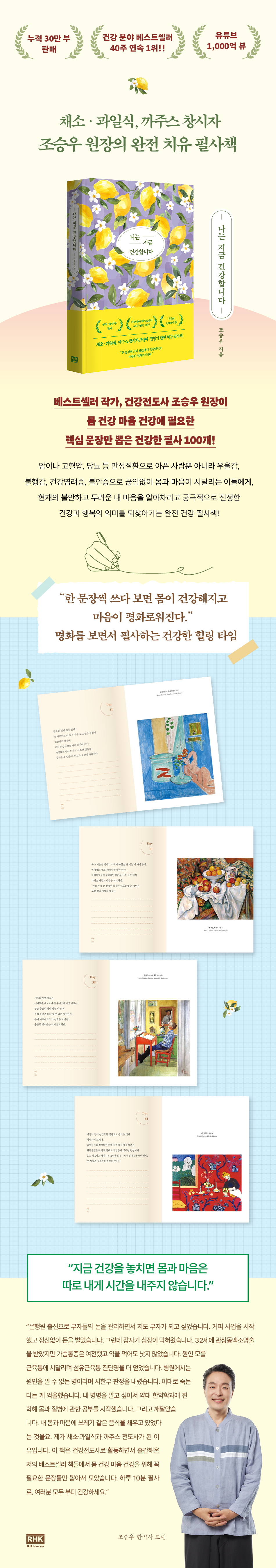 ÇØ¾ß ÇÒ ÀÏÀº ¸íÈ®ÇÏ°í ´Ü¼øÇÏ´Ù. Á×Àº À½½Ä¿¡ µ·À» ¾²Áö ¾Ê°í, »ì¾ÆÀÖ´Â À½½ÄÀ» ¸Ô´Â °Í. ÀÌ ¿øÄ¢¸¸ ¹Ýµå½Ã ÁöŰ¸é µÈ´Ù. ³»°¡ ¿À´Ã ¹«¾ùÀ» ¾î¶»°Ô ¸Ô¾ú´ÂÁö°¡ ½×¿© ¹Ýµå½Ã ´ÙÀ½ ¼¼´ë¿¡ ³ªÅ¸³´Ù. °Ç°°ËÁø °°Àº °ÍÀ¸·Î´Â Àý´ë Áúº´À» ¿¹¹æÇϰųª Ä¡À¯ÇÒ ¼ö ¾ø´Ù. (p.10) °Ç°ÇÑ »îÀ» ¿øÇÑ´Ù¸é º´¿øÀ» ã¾Æ°¡´Â °Íº¸´Ù ¸ö¿¡¼ º¸³»´Â ½ÅÈ£¸¦ ¹«½ÃÇÏÁö ¾Ê´Â °ÍÀÌ ¸ÕÀú´Ù. ¸öÀÌ ÀÌ»ó ½ÅÈ£¸¦ º¸³»´Â °¡Àå ù ¹øÂ° Áõ»óÀÌ ÇÇ·Î¿Í ÇǰïÇÔÀÌ´Ù. ¸ö¿¡¼ ½ÅÈ£¸¦ ÁÖ¸é ¾Ë¾ÆÂ÷·Á¾ß ÇÑ´Ù. ±×°ÍÀ» ¹«½ÃÇÑ Ã¤ ´Ù¸¥ °Í¿¡ ÁýÂøÇϰí ÀÖ´Â ³» ¸¶À½À» ¾Ë¾ÆÂ÷¸®´Â ¿¬½ÀÀ» °è¼ÓÇØ¾ß ÇÑ´Ù. (p.40) ¸Ó¸®ºÎÅÍ ¹ß³¡±îÁö ¿Ïº®ÇÏ°Ô ÅëÁõ Çϳª ¾øÀÌ Áö³»±â¸¦ ¹Ù¶ó±â ¶§¹®¿¡ ´õ¿í ºÒ¾ÈÇØÁø´Ù. ¸¶À½°ú ¸öÀÇ º¯È¿¡ ´ëÇØ ³Ê¹« ¸¹Àº ½Å°æÀ» ¾²Áö ¾Ê°í Áö³¾ ¼ö ÀÖÀ» ¶§ ºñ·Î¼Ò Æò¿ÂÇÑ »îÀ» »ì ¼ö ÀÖ´Ù. ¼ýÀÚ¿¡¼ ¹þ¾î³ª¶ó. ¼ºÀû, ¿¬ºÀ, Áý Æò¼ö, Ä£±¸ÀÇ ¼ö, °¢Á¾ °Ç°°ËÁø ¼öÄ¡¿¡ °¤Çô¼ »ì±â¿¡´Â ¿ì¸® ÀλýÀÌ ³Ê¹«³ª ¼ÒÁßÇÏ´Ù. (p.66) ¾î¶² Á¾¾çÀÌ ¾Ï¼¼Æ÷·Î ¹ßÀüÇØ ¾Ç¼º Á¾¾çÀÌ µÉÁö´Â ¾Æ¹«µµ ¸ð¸¥´Ù. ¸²ÇÁÁָӴϰ¡ ¾Ï¼¼Æ÷¸¦ °¡µÖµÎ°í ÀÖ´Â »óÅ¿¡¼ ¿ì¸®°¡ °¡Àå ¸ÕÀú ÇØ¾ß ÇÒ °ÍÀº ÀÚ¿¬Ä¡À¯·ÂÀ» ³ôÀÌ´Â °ÍÀÌ´Ù. Å¹ÇØÁø Ç÷¾×À» ±ú²ýÀÌ ÇÏ°í ³ëÆó¹°À» ¹èÃâÇÏ¿© ¸²ÇÁ½Ã½ºÅÛÀÌ È¸º¹µÇ°Ô ÇØ¾ß ÇÑ´Ù. ¾à¹°À̳ª ¹æ»ç¼±Àº Àý´ë ÇØÁÙ ¼ö ¾ø´Â ÀÏÀÌ´Ù. ¿ÀÁ÷ »ì¾ÆÀÖ´Â À½½ÄÀΠä¼Ò¡¤°úÀϽĸ¸ÀÌ Àΰ£ÀÇ ¸öÀ» ¿ø·¡´ë·Î µ¹·Á³õÀ» ¼ö ÀÖ´Ù. »ç¸Á¼±°í¸¦ ¹ÞÀº ¸»±â¾Ï ȯÀÚ°¡ ÀÚ¿¬¿¡ µ¹¾Æ°¡ »ýȰÇÑ ÀÌÈÄ ¾ÏÀÌ »ç¶óÁø ÀÌÀ¯´Ù. (p.168) ÃâÆÇ»ç ¼Æò¡Ú¡Ú´©Àû 30¸¸ ºÎ ÆÇ¸Å! À¯Æ©ºê 1,000¾ï ºä! °Ç° ºÐ¾ß º£½ºÆ®¼¿·¯ 40ÁÖ ¿¬¼Ó 1À§¡Ú¡Ú