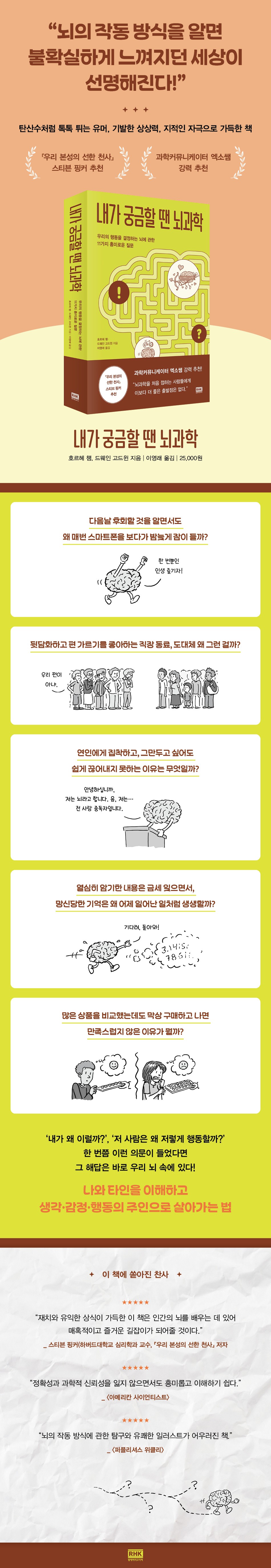 ¡º³»°¡ ±Ã±ÝÇÒ ¶© ³ú°úÇС»Àº ÀÌ·¸°Ô ºÒ°¡ÇØÇÑ Àΰ£À» ÀÌÇØÇÏ´Â °¡Àå È®½ÇÇÑ µµ±¸¸¦ Á¦°øÇÑ´Ù. ±× µµ±¸´Â ¹Ù·Î ½Å°æ°úÇÐÀÌ´Ù. »ý°¢, °¨Á¤, ÇൿÀº ¸ðµÎ ¸Ó¸´¼Ó ÀÛÀº ±â°üÀÎ ¡®³ú¡¯¿¡¼ ºñ·ÔµÇ±â ¶§¹®ÀÌ´Ù. ÀÌ Ã¥ÀÇ ÀúÀÚ È£¸£Çì èÀº ½ºÅÄÆÛµå´ëÇб³¿¡¼ ·Îº¿°øÇÐ ¹Ú»çÇÐÀ§¸¦ ¹Þ°í ͏®Æ÷´Ï¾Æ°ø°ú´ëÇб³(Caltech)¿¡¼ ¿¬±¸¸¦ ÇØ¿Â °øÇÐÀÚÀÌ´Ù. ±×·± ±×¸¦ ´õ¿í Ưº°ÇÏ°Ô ¸¸µé¾îÁÖ´Â °Ç ±×°¡ ¸¸È°¡¶ó´Â »ç½ÇÀÌ´Ù. ±×´Â ¾î·Æ°Ô ´À²¸Áú ¼ö ÀÖ´Â °úÇÐ Áö½ÄÀ» Ä«Å÷À» ÅëÇØ ½±°Ô ÀÌÇØÇϵµ·Ï ¸¸µå´Â µ¥ Ź¿ùÇÑ ´É·ÂÀ» ¹ßÈÖÇØ¿Ô´Ù. À̹ø¿¡´Â ½Å°æ°úÇÐÀÚÀÎ µå¿þÀÎ °íµåÀ©°ú ÇÔ²² Àΰ£ µÎ³ú¶ó´Â ¸ÅȤÀûÀÎ ¼¼°è¸¦ ÆÄÇìÄ£´Ù.