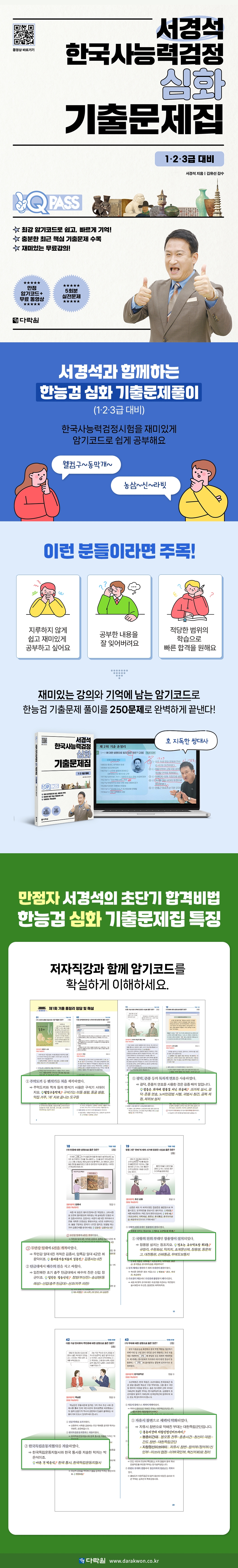 Çѱ¹»ç´É·Â°ËÁ¤½ÃÇèÀ» ³× ¹ø ¿¬¼ÓÀ¸·Î Ä¡¸£¸ç ±ú´ÞÀº °¡Àå Áß¿äÇÑ °ÍÀÌ ÀÖ½À´Ï´Ù. ¹Ù·Î ¼¼»ó¿¡¼ °¡Àå È¿°úÀûÀÎ °øºÎ Àç·á´Â ±âÃâ¹®Á¦¶ó´Â °ÍÀÔ´Ï´Ù. ÇÏÁö¸¸ ¼ö¸¹Àº ȸÂ÷ÀÇ ±âÃâ¹®Á¦¸¦ ¸ðµÎ »ìÆìº¸´Â °ÍÀº Çö½ÇÀûÀ¸·Î ºÒ°¡´É ÇÕ´Ï´Ù. ÀÌ Ã¥Àº ¹Ù·Î ±× °í¹Î¿¡¼ Ãâ¹ßÇß½À´Ï´Ù. ¼öÇè»ý ¿©·¯ºÐÀ» ´ë½ÅÇÏ¿© ÃÖ±Ù ½Ç½ÃµÈ ¹®Á¦¸¦ Áß½ÉÀ¸·Î, Á¶±Ý Áö³ ȸÂ÷ Áß¿¡¼µµ ÃâÁ¦ °¡´É¼ºÀÌ ³ôÀº ¹®Á¦µéÀ» ¾ö¼±ÇÏ¿© ÃÑ 5ȸ ºÐ·® 250¹®Á¦·Î Á¤¸®Çß½À´Ï´Ù.