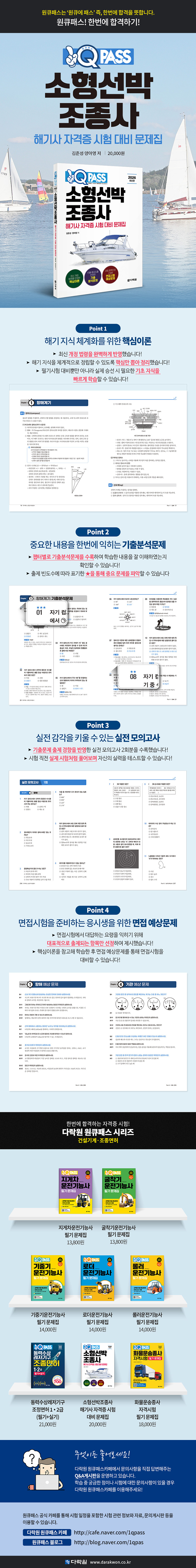 ÇØ±â»ç¶õ ¼±¹Ú°ú ¼±¹Ú¿£ÁøÀÇ ¿îÇ×, ¼±¹ÚÅë½Å¿¡ °üÇÑ Àü¹® Áö½ÄÀ» ½ÀµæÇÏ°í ±¹°¡ÀÚ°Ý ½ÃÇè¿¡ ÇÕ°ÝÇÏ¿© ¼ÒÁ¤ÀÇ ¸éÇ㸦 ÃëµæÇÑ ÀÚ¸¦ ¸»ÇÑ´Ù. ¼ÒÇü¼±¹ÚÁ¶Á¾»ç´Â ÇØ±â»ç Àüü ÀÚ°Ý ºÐ·ùÀÇ Çϳª·Î, óÀ½À¸·Î ¼±¹ÚÀ» Á¶Á¾ÇϰíÀÚ ÇÏ´Â »ç¶÷ÀÌ ½ÃÇè¿¡ ÀÀ½ÃÇÏ¿© ¸éÇ㸦 ÃëµæÇÑ´Ù. ¶ÇÇÑ, ¼ÒÇü¼±¹ÚÁ¶Á¾»ç´Â ¼ÒÇü¼±¹Ú¿¡ ¼±ÀåÀ¸·Î ½Â¼±ÇÏ¿© ±â°ü»çÀÇ ¾÷¹«µµ °âÇØ¾ß Çϱ⠶§¹®¿¡ ¼±¹ÚÀÇ ¿îÇ×°ú °ü¸®¿¡ °üÇÑ Æø³ÐÀº Áö½ÄÀ» °®Ãß¾î¾ß ÇÑ´Ù. À̹ø¿¡ Ãâ°£ÇÏ´Â ¡´2026 ¿øÅ¥ÆÐ½º ¼ÒÇü¼±¹ÚÁ¶Á¾»ç¡µ´Â ÀÀ½Ã»ýµéÀÇ ¸éÇã Ãëµæ»Ó¸¸ ¾Æ´Ï¶ó ¾ÈÀüÇÑ Ç×ÇØ¸¦ À§ÇÑ ÇØ±â Áö½Ä ½ÀµæÀ» µ½±â À§ÇØ ¡®ÇÙ½ÉÀ̷С¯, ¡®±âÃâºÐ¼®¹®Á¦¡¯, ¡®½ÇÀü ¸ðÀǰí»ç¡¯ ±×¸®°í ¡®¸éÁ¢ ¿¹»ó¹®Á¦¡¯·Î ±¸¼ºÇÏ¿´´Ù.