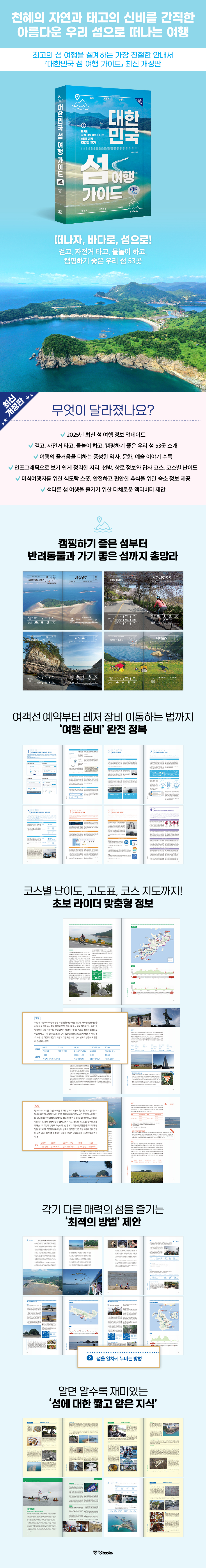 Ã¥¿¡¼ °¡Àå ¸ÕÀú ´«±æÀ» ²ô´Â °ÍÀº ¾ÐµµÀûÀÎ Ç×°ø»çÁøÀ¸·Î ±¸¼ºÇÑ ÃÑõ¿¬»ö Ⱥ¸´Ù. Çϴÿ¡¼ ³»·Á´Ù º» ¼¶Àº û»ö°ú ³ì»öÀ¸·Î ±×·Á³½ °Å´ëÇÑ »ö¸é È¸È¿Í °°´Ù. ¸Å·ÂÀûÀÎ »çÁøÀ» º¸°í ´«±æÀ» ²ô´Â ¼¶À» ÃëÇⲯ °ñ¶ú´Ù¸é, ÀÌÁ¦ ÀÔµµ ¹æ¹ý°ú Áñ±æ °Å¸®¸¦ Â÷±ÙÂ÷±Ù µé¿©´Ùº¸ÀÚ. ÀÌ Ã¥Àº ¸·¿¬È÷ ¾î·Æ°Ô¸¸ ´À²¸Á³´ø ¹èÆí ¿¹¾à ¹æ¹ýºÎÅÍ Ç×·Î Áöµµ¿Í ¼ö¿ª, ¿©°´¼±ÀÇ Á¾·ù¸¦ ÃÎÃÎÈ÷ ¼Ò°³Çϰí, ÃÖÀûÀÇ ´ä»ç ÄÚ½º¿Í Áñ±æ ¸¸ÇÑ ¾×ƼºñƼ¸¦ ¾ËÂ÷°Ô ¼ö·ÏÇß´Ù. ¾ðÁ¦, ¾îµð·Î, ´©±¸¿Í ¶°³ªµç ¼¶À¸·ÎÀÇ ¿©Á¤À» ¼Õ½±°Ô ¼³°èÇÒ ¼ö ÀÖ´Ù. ¶ÇÇÑ ¹Ð¹°°ú ½ä¹°, ±Þº¯ÇÏ´Â ±â»ó Çö»óÀ¸·Î Á¡Ã¶µÈ ¡®¹Ù´ÙÀÇ ½Ã°£¡¯¿¡ ÀûÀÀÇÒ ¼ö ÀÖµµ·Ï ³¯¾¾¿Í ¹°¶§ Á¤º¸¸¦ ²Ä²ÄÇÏ°Ô Á¦°øÇϰí, Èï¹Ì·Î¿î ¼¶ °íÀ¯ÀÇ ¿ª»ç, ¹®È, ¿¹¼ú À̾߱⸦ ´ã¾Æ ¼¶ÀÌ ÇѰá Ä£±ÙÇÏ°Ô ´À²¸Áöµµ·Ï Çß´Ù. ¹Ì½Ä ¿©ÇàÀÚ¸¦ À§ÇÑ ½Äµµ¶ô ½ºÆý, ¾ÈÀüÇÏ°í Æí¾ÈÇÑ ÈÞ½ÄÀ» À§ÇÑ ¼÷¼Ò Á¤º¸±îÁö ¸¶·ÃÇßÀ¸´Ï ¡®¼¶ÀÌ ´ç±â´Â ³¯¡¯À̸é, ÀÌ ÇÑ ±Ç¸¸ µé°í Èǽ ¾îµð·Îµç ¶°³ªº¸¾Æµµ ÁÁ´Ù.