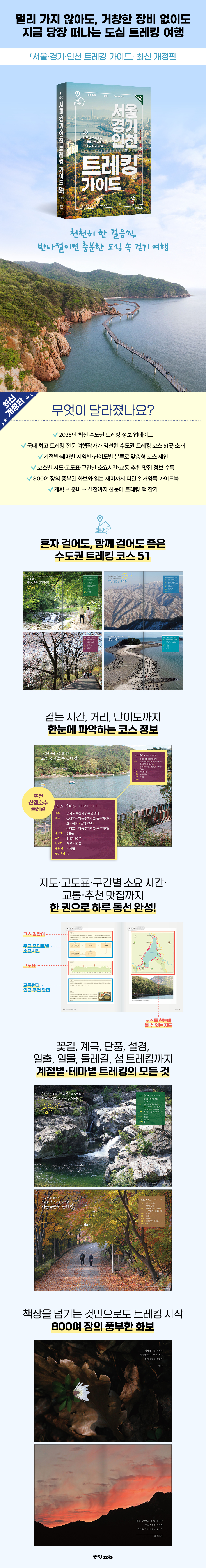 ¡º¼¿ï¡¤°æ±â¡¤ÀÎõ Æ®·¹Å· °¡À̵塻¿¡¼´Â 30³âÀÌ ³Ñ´Â ½Ã°£ µ¿¾È ±¹³»¿Ü »êµéÀ» ¼··ÆÇÑ ¿ì¸®³ª¶ó ÃÖ°íÀÇ Æ®·¹Å· Àü¹®°¡°¡ ¾ö¼±ÇÑ 51°÷ÀÇ ÄÚ½º¸¦ ¼Ò°³ÇÑ´Ù. °èÀýº°·Î Áñ±â±â ÁÁÀº Æ®·¹Å· ÄÚ½º¿Í ÀÏÃ⡤Àϸô, »ê¼º, µÑ·¹±æ, ¿ª»ç¡¤¹®È, ¹«Àå¾Ö ½£±æ µî ´Ù¾çÇÑ Å׸¶º° µµ½É Æ®·¹Å· ÄÚ½º¸¦ ¼Ò°³ÇØ Æ®·¹Å·ÀÇ ´Ù¾çÇÑ Áñ°Å¿òÀ» ¸¸³£ÇÒ ¼ö ÀÖµµ·Ï Çß´Ù.