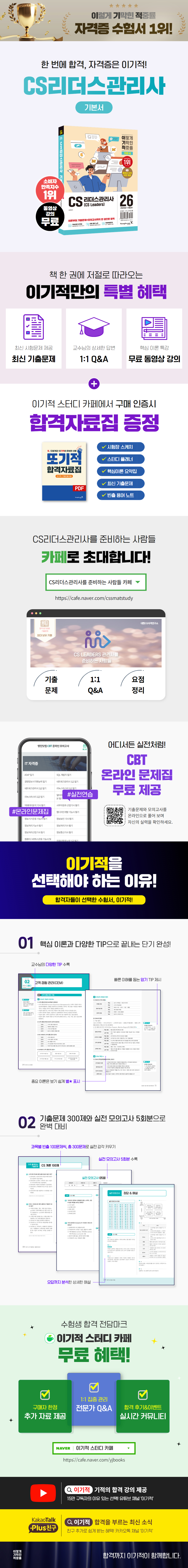 CS¸®´õ½º°ü¸®»çÀÇ ÃâÁ¦±âÁØÀ» ºÐ¼®ÇÏ¿© ÇÙ½ÉÀÌ µÇ´Â À̷еéÀ» Á¤¸®ÇÏ¿´½À´Ï´Ù. ½ÃÇèÀå¿¡¼ ¹Ù·Î Ȱ¿ëÇÒ ¼ö ÀÖ´Â '¾Ï±â TIP'°ú, ½ÉÈ ³»¿ëÀ» À§ÇÑ '´õ ¾Ë±â TIP', ÀÌÇØ¸¦ µ½´Â '±³¼ö´Ô TIP'±îÁö! ¶ÇÇÑ °¢ À̷п¡ ÇØ´çÇÏ´Â ¿¹»ó¹®Á¦¸¦ ¼ö·ÏÇÏ¿© ÃâÁ¦ ³»¿ëÀ» ´Ù½Ã ÇÑ ¹ø Á¡°ËÇÒ ¼ö ÀÖ½À´Ï´Ù.