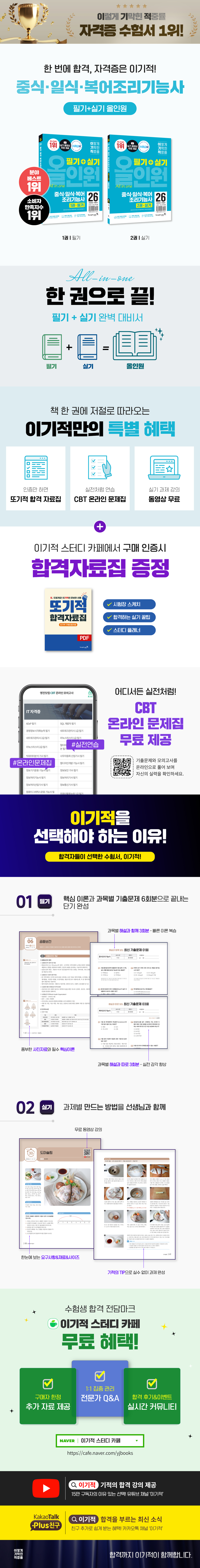 Ã¥¼Ò°³»õ·Ó°Ô ¹ßÇ¥µÈ ÃֽŠÃâÁ¦±âÁذú À§»ý±âÁØÀ» Á¦´ë·Î °Ü³ÉÇÏ¿© Áß½Ä, ÀϽÄ, º¹¾îÁ¶¸®±â´É»ç ½ÃÇè¿¡ µü ¸Â´Â ³»¿ëµé·Î¸¸ ±¸¼ºÇÑ ¡´2026 À̱âÀû Á߽ġ¤ÀϽġ¤º¹¾îÁ¶¸®±â´É»ç Çʱâ+½Ç±â ¿ÃÀοø¡µÀÌ À̱âÀû¿¡¼ Ãâ°£µÇ¾ú½À´Ï´Ù. ÀÌ ÇÑ ±ÇÀ¸·Î Áß½Ä, ÀϽÄ, º¹¾îÁ¶¸®±â´É»ç Çʱâ¿Í ½Ç±â ½ÃÇè ¸ðµÎ ÇÑ ¹ø¿¡ ´ëºñÇÏ½Ç ¼ö ÀÖ¾î¿ä.