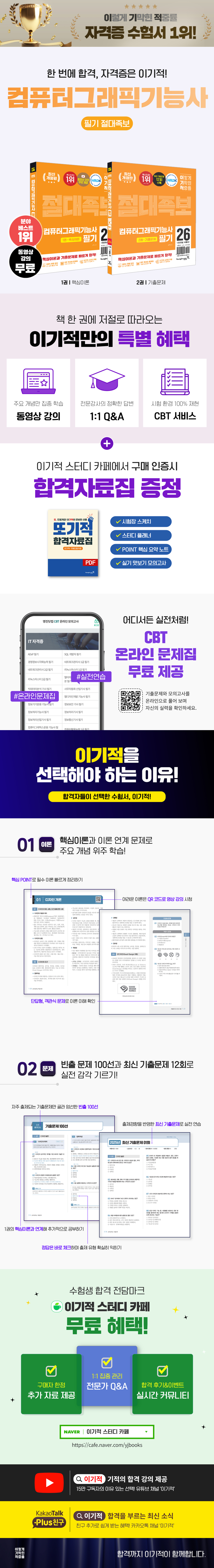 Ã¥¼Ò°³º» µµ¼´Â 2026 ÄÄÇ»Åͱ׷¡Çȱâ´É»ç Çʱ⠽ÃÇèÀ» ´Ü±â°£¿¡ ÁغñÇÏ´Â ºÐµéÀ» À§ÇØ º¯°æµÈ ÃֽŠÃâÁ¦±âÁØÀ» ¿Ïº® ¹Ý¿µÇÏ¿© Ãâ°£ÇÑ ¼öÇè¼ÀÌ´Ù. ÃÑ 2±ÇÀ¸·Î ÀÌ·ç¾îÁ® ÀÖ´Â º» ¼öÇè¼ Áß 1±Ç ÇÙ½ÉÀÌ·ÐÀº Áß¿äÇÑ ³»¿ë¸¸À» ºü¸£°í È®½ÇÇÏ°Ô ÇнÀÇÒ ¼ö ÀÖµµ·Ï ÀúÀÚ°¡ ¾ö¼±ÇÑ 100 POINTÀÇ ÀÌ·ÐÀ» ´ã¾Ò´Ù. 2±Ç ±âÃâ¹®Á¦Áý¿¡¼´Â ÀÚÁÖ ÃâÁ¦µÇ´Â ±âÃâ¹®Á¦ 100¼±°ú ÃֽбâÃâ¹®Á¦ 12ȸºÐÀ» ¼ö·ÏÇØ º¹½À±îÁö ÇÑ ±³Àç·Î ³¡³¾ ¼ö ÀÖµµ·Ï ±¸¼ºÇß´Ù. 2026³â ÄÄÇ»Åͱ׷¡Çȱâ´É»ç ½ÃÇè, À̱âÀûÀÌ ¼öÇè»ý ¿©·¯ºÐÀÇ ÇÕ°ÝÀ» ÀÀ¿øÇÑ´Ù.