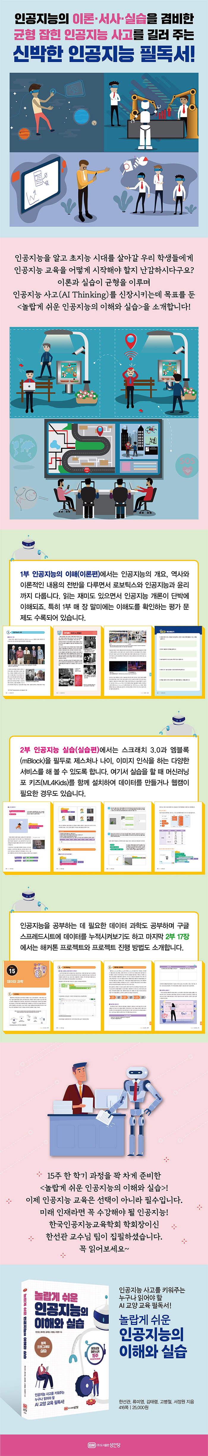 ÀÌ Ã¥Àº ÀΰøÁö´ÉÀ» Á¦´ë·Î ÀÌÇØÇϰí À̷аú ½Ç½À ¾î´À ÇÑÂÊ¿¡ Ä¡¿ìÄ¡Áö ¾Ê°í ±ÕÇü ÀÖ°Ô ±³À°ÇÔÀ¸·Î½á ÀΰøÁö´É¿¡ ´ëÇÑ È°¿ëµµ¿Í ÀΰøÁö´É »ç°í¸¦ ³ôÀÏ ¼ö ÀÖµµ·Ï ±æÀâÀÌ ¿ªÇÒÀ» ÇØÁØ´Ù. ÀΰøÁö´ÉÀ» Á¦´ë·Î ÀÌÇØÇÒ ¼ö ÀÖµµ·Ï ÀÌ·ÐÀûÀÎ ºÎºÐÀº ÀΰøÁö´ÉÀÇ ÀÌ·ÐÀûÀÎ °¢ ºÐ¾ß¸¦ Á¦´ë·Î ¼³¸íÇϸç 1ºÎ ¸Å Àå ¸»¹ÌÀÇ [½Ã¹Ä·¹À̼Ç]¿¡¼´Â ¾Ë°í¸®ÁòÀ̳ª ½Ç½ÀÀ», [ÄÚµùÀ¸·Î üÇèÇϱâ]¿¡¼´Â ÇÁ·Î±×·¡¹ÖÀ», [AI ÅäÇÈ]¿¡¼´Â ÃֽŠÀΰøÁö´É °ü·Ã À̽´°¡ ¼Ò°³µÇ¾î Àд Àç¹Ì°¡ ÀÖ´Ù. ƯÈ÷ ³»¿ë ÀÌÇØ¸¦ È®ÀÎÇÏ´Â Æò°¡ ¹®Á¦µµ ¸¶·ÃµÇ¾î ÀÖ´Ù. 2ºÎ´Â ½Ç½ÀÀ¸·Î ML4Kids, ½ºÅ©·¡Ä¡3, ¿¥ºí·Ï(mBlock)À» Ȱ¿ëÇÑ ºí·Ï ÇÁ·Î±×·¡¹Ö ÇÁ·ÎÁ§Æ®·Î ÀΰøÁö´ÉÀ» ÇØº¼ ¼ö ÀÖ´Ù.