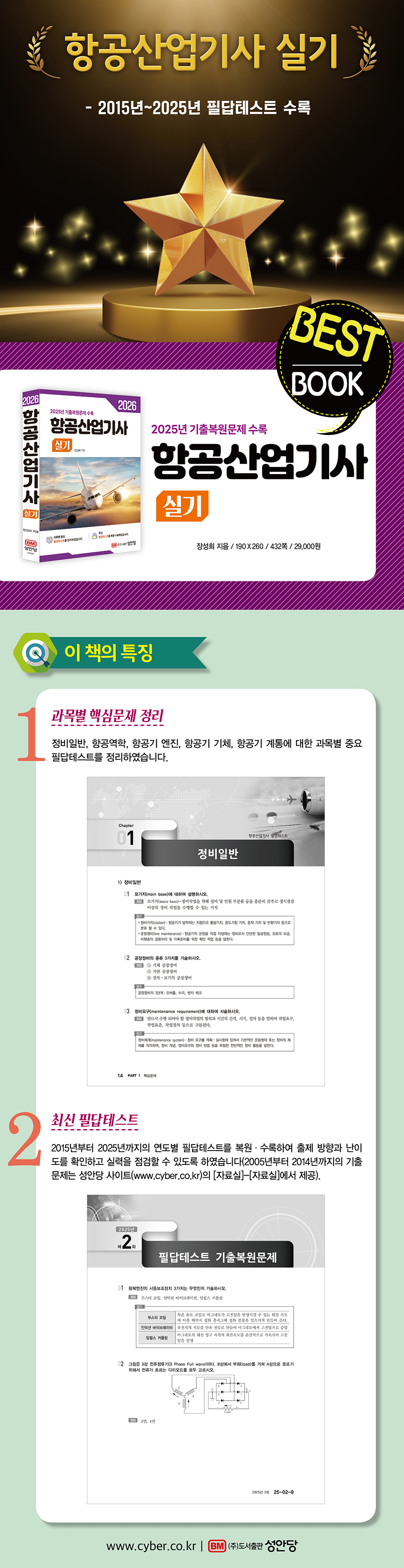 Ã¥¼Ò°³Ç×°ø°øÇÐ ±â¼ú ºÐ¾ß¿¡¼ Ç×°ø±â Á¤ºñ(±âü/±â°ü/Àåºñ)¿¡ ´ëÇÑ Áö½ÄÀ» °®Ãá´Ù´Â °ÍÀº Ç×°ø±â ¼³°è ¹× Á¤ºñ¸¦ Çϱâ À§ÇÑ °¡Àå ±âº»ÀûÀ̰í ÇʼöÀûÀÎ Áö½ÄÀ» °®Ãá´Ù°í º¼ ¼ö ÀÖ½À´Ï´Ù. ÀÌ Ã¥Àº Ç×°ø ºÐ¾ßÀÇ ±âº» ±â¼úÀÚ°ÝÀÎ Ç×°ø»ê¾÷±â»ç ½Ç±â[ÇÊ´ä°í»ç](Á¤ºñÀϹÝ/Ç×°ø¿ªÇÐ/Ç×°ø±â ¿£Áø/Ç×°ø±â ±âü/Ç×°ø±â °èÅë)¸¦ ÃëµæÇϱâ À§ÇØ ²À ¾Ë¾ÆµÎ¾î¾ß ÇÒ ÇʼöÀûÀÎ ½Ç¹«Áö½ÄÀ» ´ÙÀ½°ú °°Àº ¼ø¼¿¡ ÀÇÇØ Çٽɹ®Á¦¿Í ¿¬µµº° ÇÊ´äÅ×½ºÆ® ±âÃ⺹¿ø¹®Á¦ ü°è·Î Á¤¸®ÇÏ¿© ¼¼úÇÑ ¼öÇè¼ÀÔ´Ï´Ù.