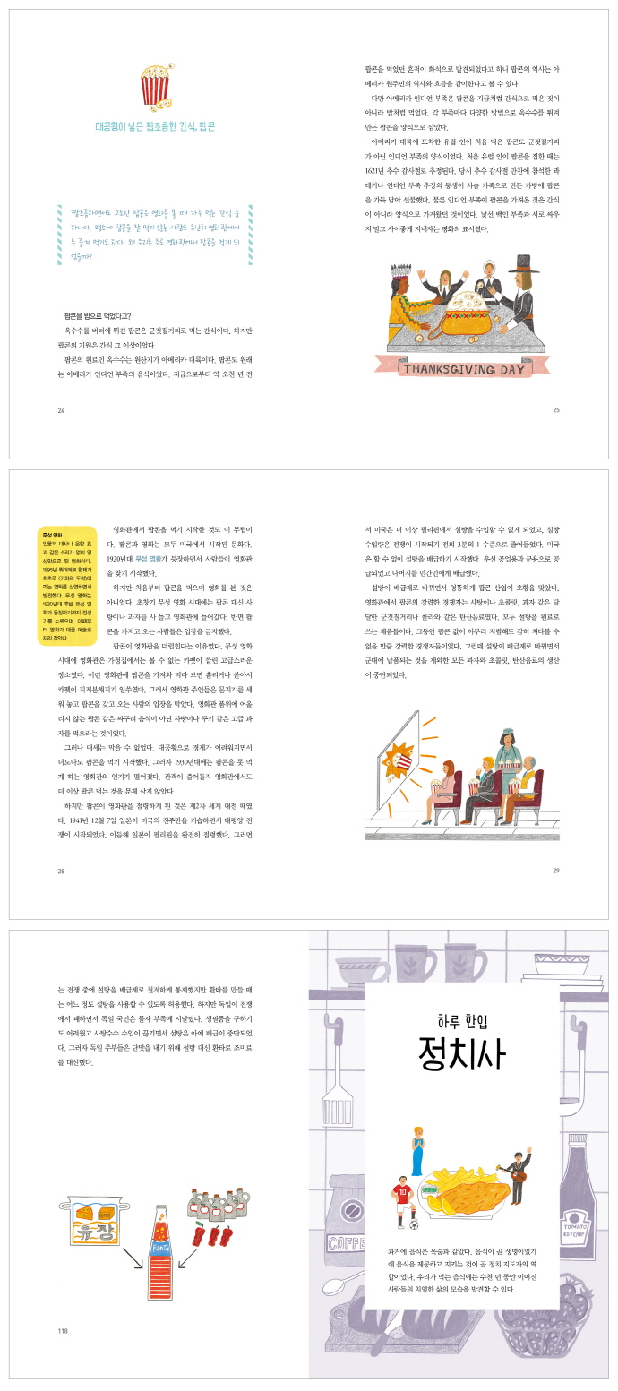 ÀÌ Ã¥Àº À½½ÄÀ» ÅëÇØ ¼¼°è»ç¸¦ °øºÎÇϴ û¼Ò³â ±³¾ç¼ÀÌ´Ù. Å丶ÅäÄÉø, ÆËÄÜ µî ¿ì¸®¿¡°Ô Ä£±ÙÇϸ鼵µ ¿ª»çÀûÀÎ À½½Ä 21°¡Áö¸¦ ÅëÇØ¼ ¼¼°è»ç¸¦ Á» ´õ Èï¹Ì·Ó°Ô Á¢±ÙÇÑ´Ù. ¶ÇÇÑ ¼¼°è»ç Áß¿¡¼µµ Áß¿äÇÑ ºÐ¾ßÀÎ °æÁ¦»ç, ¹®È»ç, °úÇлç, Á¤Ä¡»ç ÀÌ·¸°Ô ³× °¡Áö¸¦ ¸ðµÎ ´ã°í Àֱ⠶§¹®¿¡ Àç¹Ì¸¦ ³Ñ¾î ±¸Ã¼ÀûÀ̸鼵µ ±ä¹ÐÇÑ ¿ª»ç Áö½ÄÀ» ¿³º¼ ¼ö ÀÖ´Ù. ¿¹¸¦ µé¾î ¾Æ¸Þ¸®Ä« Àεð¾ðÀÇ ÁÖ½ÄÀ̾ú´ø ÆËÄÜÀÌ Áö±Ýó·³ ¿µÈ°üÀÇ °£½Ä°Å¸®°¡ µÇ±â±îÁö ±× ¹è°æ¿¡´Â ¹Ì±¹ÀÇ °æÁ¦ ´ë°øÈ²ÀÌ ÀÖ¾ú´Ù. ¶ÇÇÑ ÀϺ»ÀÌ °í±â¸¦ ¸ÔÁö ¾Ê´Ù°¡ °©Àڱ⠰í±â¸¦ ¸Ô°Ô µÈ ÀÌÀ¯´Â Á¤Ä¡ÀûÀ¸·Î ¸ÞÀÌÁö À¯½ÅÀ̶ó´Â ±½Á÷ÇÑ »ç°ÇÀÌ ÀÖ¾ú´Ù. ÀÌ·¸°Ô À½½Ä ÇÑ ±×¸©¿¡ ´ã±ä ¿ª»çÀûÀÎ »ç°Ç°ú ±× È帧À» µû¶ó°¡´Ù º¸¸é ÀÚ¿¬½º·´°Ô ¼¼°è»ç¿¡ Ç« ºüÁö°Ô µÉ °ÍÀÌ´Ù.