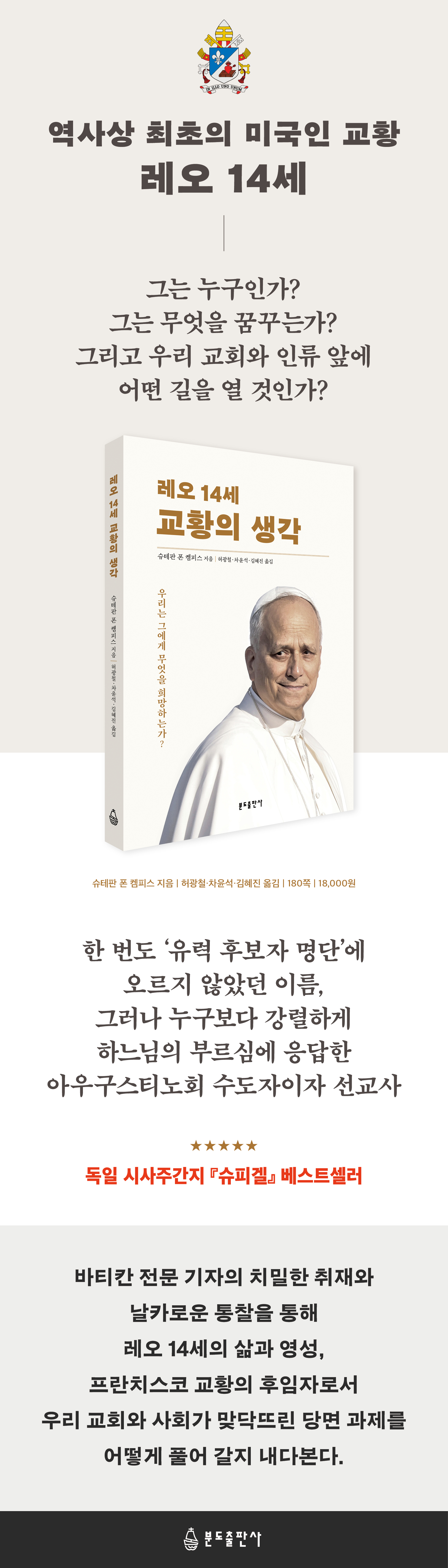 ¿ª»ç»ó ÃÖÃÊÀÇ º£À̺ñºÕ ¼¼´ë ±³È²Àº µÎ ¼¼°è¸¦ ¾Æ¿ì¸£´Â »ç¶÷ÀÌ´Ù. ±×ÀÇ »îÀº ºÏ¹Ì¿Í ³²¹Ì, ¼±¸ ¼¼°è¿Í ±Û·Î¹ú »ç¿ì½º, ±³È¸ ÀüÅë¿¡ ´ëÇÑ »ç¶û°ú »çȸÁ¤ÀÇ¿¡ ´ëÇÑ ¿Á¤À» ¸ðµÎ ÅëÇÕÇÑ´Ù. ±×´Â ±³È¸ ³» ´Ù¾çÇÑ È帧 »çÀÌ¿¡¼ ´Ù¸®¸¦ ³õÀ» ¼ö ÀÖ´Â ´É·ÂÀÌ ÀÖÀ¸¸ç, ÀÌ´Â ¿äÁò ÀϺΠ»ç¶÷µéÀÌ °üÂûÇÏµí º£³×µñµµ 16¼¼¿Í ÇÁ¶õÄ¡½ºÄÚ ±³È²À» ÇÕÃÄ ³õÀº µíÇÏ´Ù. ¶ÇÇÑ ±×´Â ½Ç¿ëÀûÀ̸ç, »ç¸ñ°ú ¼±±³ °æÇèÀÌ ÀÖ°í, ´Ù¾çÇÑ ¼¼°è ±³È¸ÀÇ ¸ð½À°ú ·Î¸¶ ±³È²Ã»ÀÇ ÀýÂ÷µµ Àß ¾Ë°í ÀÖ´Ù. ±×ÀÇ ¸ð±³ÀÎ ½ÃÄ«°í ½ÅÇдëÇÐÀÌ 2023³â ÇÁ·¹º¸½ºÆ®°¡ Ãß±â°æÀ¸·Î ¼ÀӵǾúÀ» ¶§ ¾ð±ÞÇßµíÀÌ, ±×ÀÇ »î¿¡´Â ¡°´ëÇÐ °Àǽǿ¡¼ ¶óƾ¾Æ¸Þ¸®Ä«ÀÇ ºó¹Î°¡¸¦ °ÅÃÄ ÃÖ°íÀ§ ÇàÁ¤Á÷¿¡ À̸£±â±îÁö¡± ¸Å¿ì ´Ù¾çÇÑ °üÁ¡ÀÌ Áý¾àµÇ¾î ÀÖ´Ù. ¿µÀûÀ¸·Î ±×´Â ±×¸®½ºµµ±³ÀÇ °¡Àå ÅëÂû·Â ÀÖ´Â »ç»ó°¡ Áß ÇÑ ¸íÀÎ ¼º ¾Æ¿ì±¸½ºÆ¼³ë¿¡ »Ñ¸®¸¦ µÎ°í ÀÖÀ¸¸ç, ÀÌ·Î½á º£³×µñµµ 16¼¼ ±³È²ÀÇ ½Ã±âó·³ ±³ºÎµé°ú Ãʴ뱳ȸÀÇ ½ÅÇÐÀÌ ´Ù½Ã±Ý ÁÖ¸ñ¹Þ°Ô µÇ¾ú´Ù(44-45ÂÊ). ¡°·ÓÀº °ÉÀ½¸¶¸¦ ½ÃÀÛÇÒ ¶§ºÎÅÍ »çÁ¦ ¼º¼Ò¸¦ ǰ°í ÀÖ¾ú½À´Ï´Ù. ±×´Â ´Ù¸®¹ÌÆÇÀ» Á¦´ë »ï¾Æ ¹Ì»ç ³îÀ̸¦ Áñ°Ü Çß¾î¿ä. µÕ±Û°í ¾Ë·Ï´Þ·ÏÇÑ °úÀÚÀÎ ¡®³×ÄÚ ¿þÀÌÆÛ¡¯¸¦ ¼ºÃ¼Ã³·³ ³ª´©¾î ÁÖ¾úÁÒ.¡± ·ÓÀº ¾î¸° ½ÃÀýºÎÅÍ ÈÀÌÆ®»è½ºÀÇ ÆÒÀ̾ú´Ù°í ÇÑ´Ù. ¡°¿ì¸®´Â ·ÓÀÌ Àü ¼¼°è¸¦ µ¹¾Æ´Ù´Ï´Ï±î ÀÌ·± ¸¶À½ÀÌ »ç¶óÁú ÁÙ ¾Ë¾Ò´Âµ¥, ¾Æ´Ï¾ú½À´Ï´Ù. Áý¿¡ ¿Ã ¶§¸¶´Ù ½ÃÁ𠼺ÀûÀÌ ¾î¶²Áö ¹Ù·Î ¹°¾îº¾´Ï´Ù.¡± ±× Á¶±×¸¸ µ¿»ýÀÌ ¾ðÁ¨°¡ ±³È²ÀÌ µÉ °ÍÀ̶ó°í´Â ²Þ¿¡µµ »ý°¢ÇÏÁö ¸øÇß´Ù°í Çß´Ù. ¡°¿ì¸®´Â ±×°¡ ÈǸ¢ÇÑ ÀÏÀ» ÇÒ °ÍÀ̶ó°í ¹Ï¾úÁö¸¸, ÀÌ·¸°Ô ³ôÀº ÀÚ¸®±îÁö´Â ¾Æ´Ï¾ú½À´Ï´Ù¡±(51ÂÊ). ·¹¿À 14¼¼´Â ÀÚ½ÅÀÇ ±³È¸ ¾È¿¡¼»Ó¸¸ ¾Æ´Ï¶ó, ÀÏÄ¡, ´õ Á¤È®ÇϰԴ ÀÏÄ¡¿Í ´Ù¾ç¼º »çÀÌÀÇ ¿Ã¹Ù¸¥ ±ÕÇüÀ» Áö۱â À§ÇØ ºÐÅõÇØ¾ß ÇÑ´Ù. À̰ÍÀÌ ±× ¾Õ¿¡ ³õÀÎ ¾öû³ °úÁ¦´Ù. ±×¸®½ºµµ±³ ±³È¸ °£¿¡, ¿©·¯ Á¾±³ °£¿¡ ±×¸®°í °Å´ëÇÑ ¼¼°è ¹«´ë¿¡¼ ÀÏÄ¡, ÆòÈ, Àΰ£ Á¸¾ö¼º, Á¤ÀǸ¦ À§ÇÑ ¸ñ¼Ò¸®°¡ ±× ¾î´À ¶§º¸´Ù Àý½ÇÇÏ°Ô ÇÊ¿äÇÏ´Ù. ±×¿¡°Ô »êÀûÇÑ °úÁ¦¸¦ ¾î¶² ¸¶À½À¸·Î ÇØ°áÇØ ³ª°¥ °ÍÀÎÁö ¹¯´Â´Ù¸é, ±×´Â ¾Æ¸¶ 2023³â ÇÁ¶õÄ¡½ºÄÚ ±³È²ÀÌ ±×¸¦ ·Î¸¶·Î ºÒ·¯µé¿´À» ¶§ ¡¸¹ÙÆ¼Ä ¶óµð¿À¡¹¿Í ÇÑ ÀÎÅͺ信¼ ÇÑ ´ë´äÀ» ´Ù½Ã ÇÒ °ÍÀÌ´Ù. ¡°Àú´Â ¿©ÀüÈ÷ Àú ÀÚ½ÅÀ» ¼±±³»ç¶ó°í »ý°¢ÇÕ´Ï´Ù. ¸ðµç ±×¸®½ºµµÀΰú ¸¶Âù°¡Áö·Î, Á¦ ¼Ò¸íÀº ¼±±³»çÀÔ´Ï´Ù. ¾îµð¿¡ ÀÖµç º¹À½À» ¼±Æ÷ÇÒ °ÍÀÔ´Ï´Ù. ½ÃÄ«°í°¿¡¼µç, ÅÂÆò¾ç¿¡¼µç, Å׺£·¹°¿¡¼µç ¸»ÀÔ´Ï´Ù¡±(172-3ÂÊ). ÃâÆÇ»ç ¼Æò¡Úµ¶ÀÏ ´ëÇ¥ ½Ã»ç ÁÖ°£Áö ¡º½´Çǰ֡» º£½ºÆ®¼¿·¯¡Ú