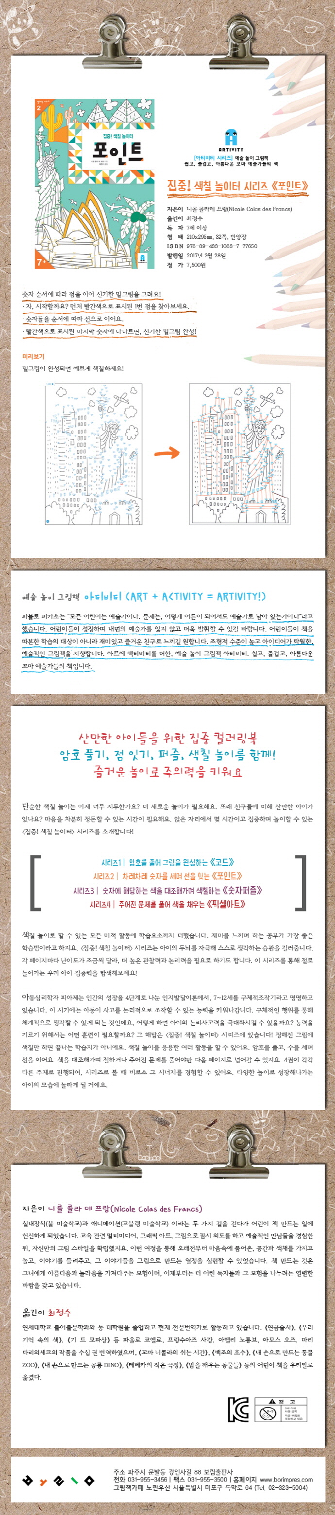 Ã¥¼Ò°³¾ÆÆ¼ºñƼ(Art+Activity) ½Ã¸®Áî´Â ¾ÆÆ®¿¡ ¾×ƼºñƼ¸¦ ´õÇÑ, ¿¹¼ú ³îÀÌ ±×¸²Ã¥ ¾ÆÆ¼ºñƼ. ½±°í, Áñ°Ì°í, ¾Æ¸§´Ù¿î ²¿¸¶ ¿¹¼ú°¡µéÀÇ Ã¥ÀÌ´Ù. Á¦2±Ç Æ÷ÀÎÆ®¿¡¼´Â ¼ýÀÚ ¼ø¼¿¡ µû¶ó Á¡À» ÀÌ¾î ½Å±âÇÑ ¹Ø±×¸²À» ±×¸®µµ·Ï ±¸¼ºÇß´Ù. ¸ÕÀú »¡°£»öÀ¸·Î Ç¥½ÃµÈ 1¹ø Á¡À» ã¾Æº¸°í, ¼ýÀÚµéÀ» ¼ø¼¿¡ µû¶ó ¼±À¸·Î À̾´Ù º¸¸é »¡°£»öÀ¸·Î Ç¥½ÃµÈ ¸¶Áö¸· ¼ýÀÚ¿¡ ´Ù´Ù¸£°Ô µÈ´Ù. ½Å±âÇÑ ¹Ø±×¸²ÀÌ ¾î´À»õ ¿Ï¼ºµÇ´Â ½Å±âÇÑ Ä÷¯¸µÀÇ ¼¼°è·Î µé¾î°¡º¸ÀÚ!