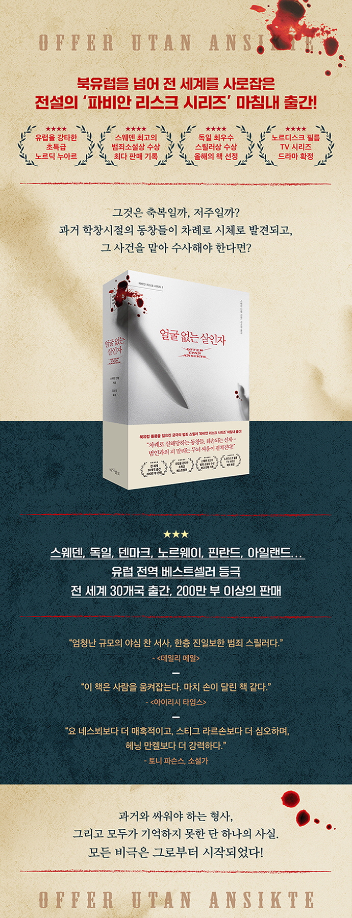 ½º¿þµ§¿¡¼ Ãâ°£°ú µ¿½Ã¿¡ Å« ÈÁ¦¿Í ¹ÝÇâÀ» ºÒ·¯ÀÏÀ¸Å°¸ç µ¶ÀÏ, µ§¸¶Å©, ³ë¸£¿þÀÌ, Çɶõµå, ¾ÆÀÏ·£µå µî ºÏÀ¯·´ Àü¿ª¿¡¼ º£½ºÆ®¼¿·¯¸¦ ±â·ÏÇϰí, Àü ¼¼°è 30°³±¹¿¡¼ Ãâ°£µÇ¾î 200¸¸ ºÎ ÀÌ»óÀÇ ÆÇ¸Å¸¦ ¿Ã¸° ½º¿þµ§ ÃÖ°íÀÇ Àα⠽º¸±·¯ ÀÛ°¡ ½ºÅ×ÆÇ ¾ÈÇðÀÇ ¡®ÆÄºñ¾È ¸®½ºÅ© ½Ã¸®Á. ±× ù ¹øÂ° À̾߱⠡¶¾ó±¼ ¾ø´Â »ìÀÎÀÚ¡·°¡ ¸¶Ä§³» Çѱ¹ÀÇ µ¶ÀÚµéÀ» ã¾Æ¿Ô´Ù. ÀÌ Ã¥Àº Çü»ç ÆÄºñ¾È ¸®½ºÅ©¸¦ Áß½ÉÀ¸·Î ÆîÃÄÁö´Â ³ë¸£µñ ´©¾Æ¸£ ½Ã¸®Áî¹°ÀÇ Ã¹ ½ÅȣźÀ̱⵵ ÇÏ´Ù.